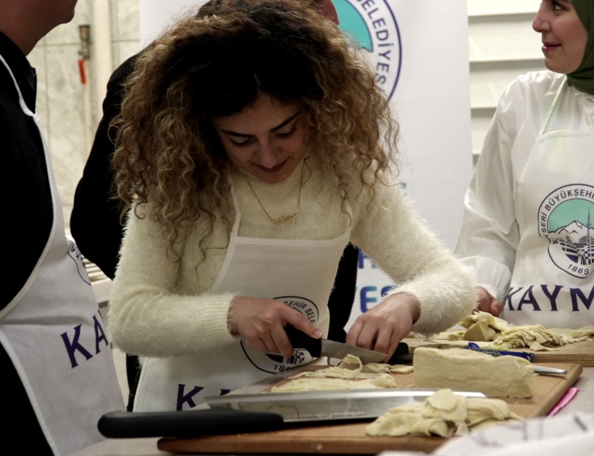 Zengin mutfak kültürüne sahip Kayseri’nin önemli gastronomi değerlerinden biri olan pastırmanın doğranması ve sunumu ile ilgili teorik ve uygulamalı derslerden oluşan daha önce de birçok kez düzenlenen kurs vatandaşların yoğun ilgisi sürüyor.