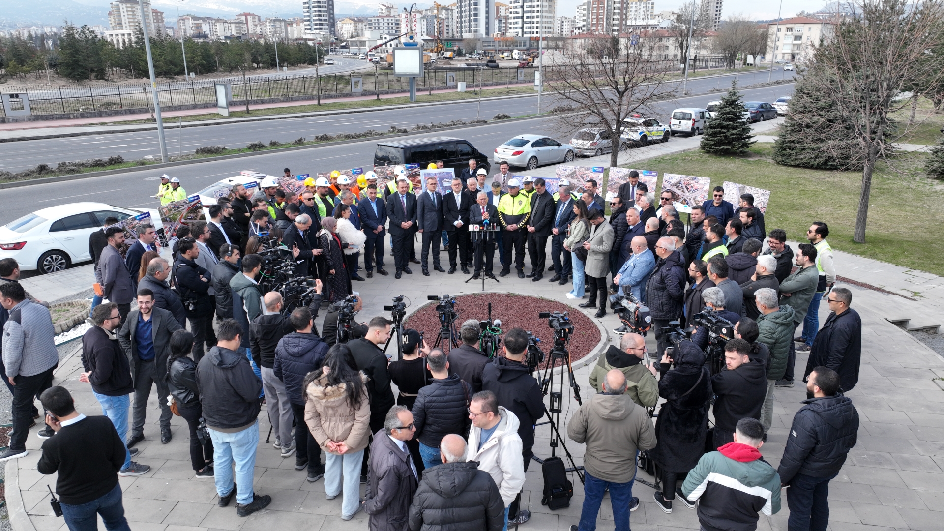 Büyükşehir Belediye Başkanı Dr. Memduh Büyükkılıç, şehir trafiğini rahatlatacak önemli projelerden biri olan Kartal Katlı Kavşağı ve Bağlantı Yolları Projesi ile ilgili Kartal Şehitliği önünde basın açıklaması yaptı.