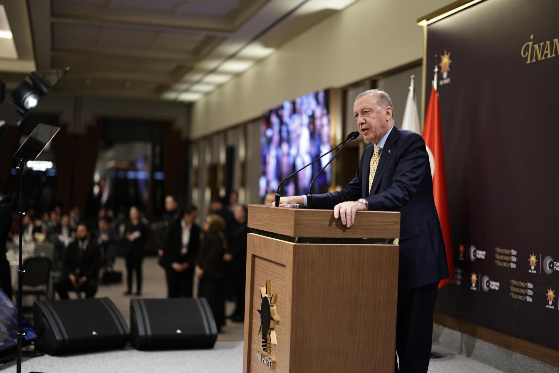 İftar programında partililere hitap eden Cumhurbaşkanı ve AK Parti Genel Başkanı Recep Tayyip Erdoğan, anlamlı bir iftar sofrasında, güzel bir atmosferde partililerle birlikte olmaktan duyduğu memnuniyeti dile getirerek, “Gönüllerimizi bu bereket sofrasında bir araya getiren, partimizin genel sekreterliğine teşekkür ediyor, davetimize icabet eden siz kardeşlerime de şükranlarımı sunuyorum” dedi.