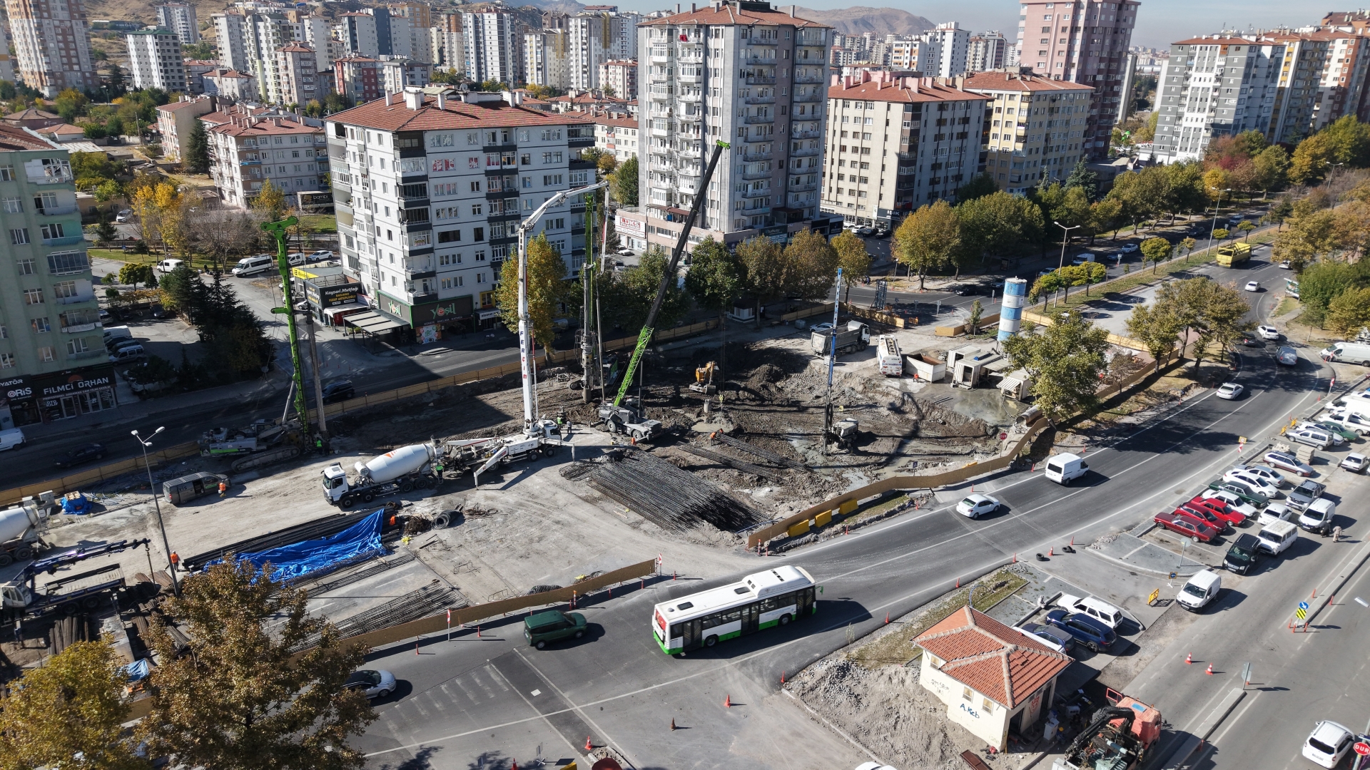 Söz konusu çalışmalar kapsamında ekipler, altyapı faaliyetlerinin yanı sıra katlı kavşağın temel çalışmalarını da sürdürüyor.