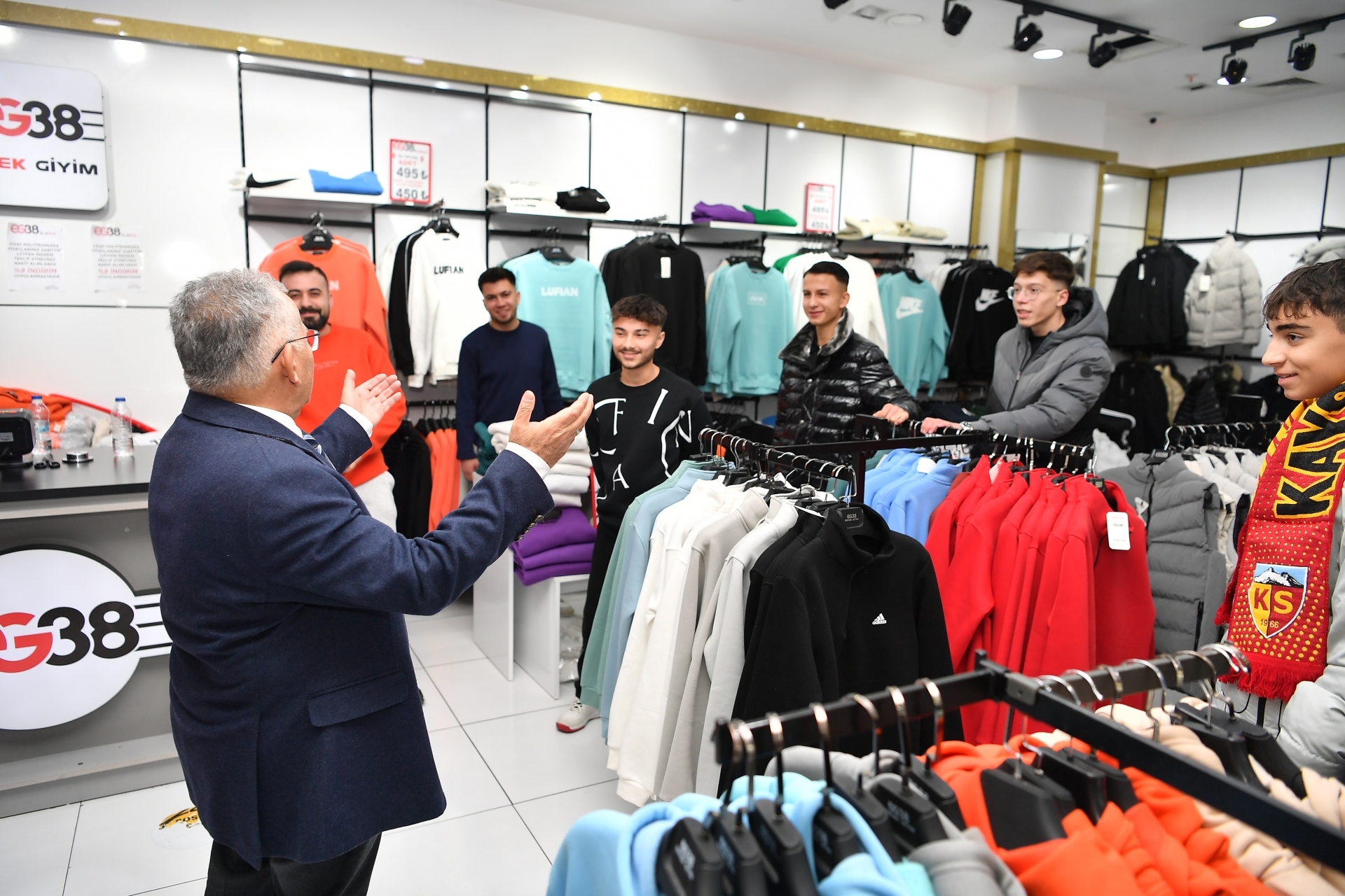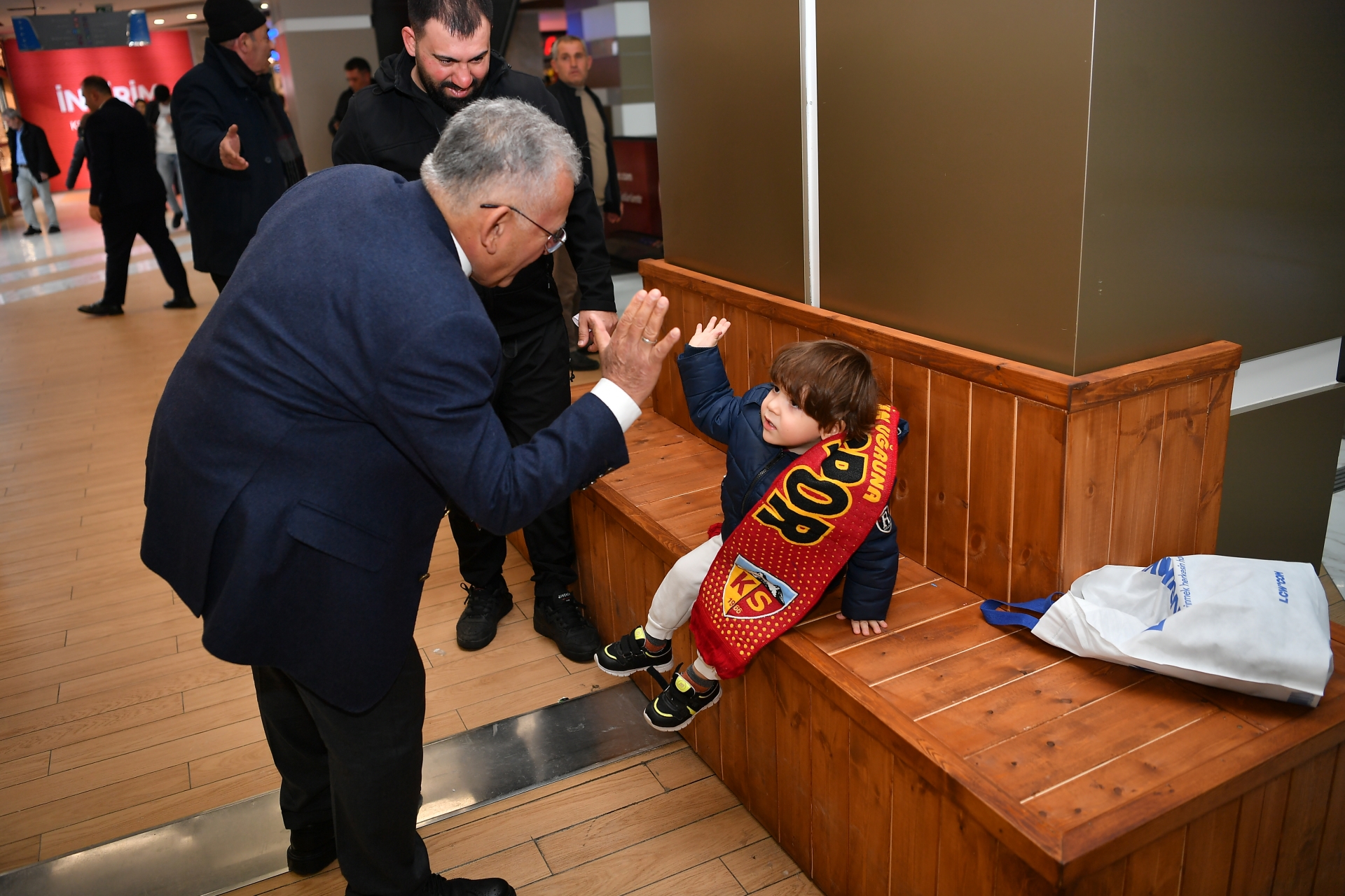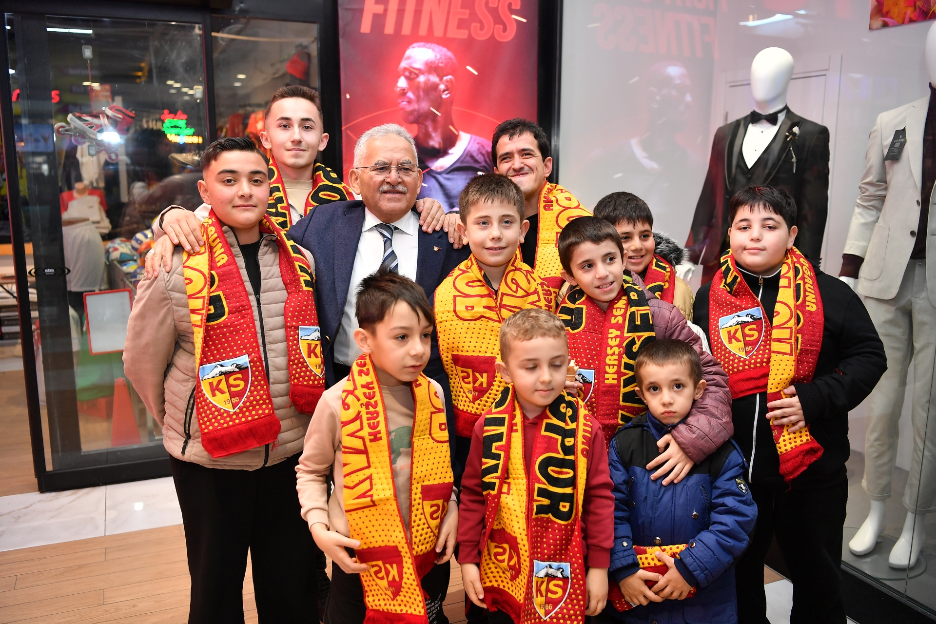 Gençlere Kayserispor atkısı hediye eden Büyükkılıç, onlarla da özel olarak ilgilendi, sohbet ederek fotoğraf çekindi.