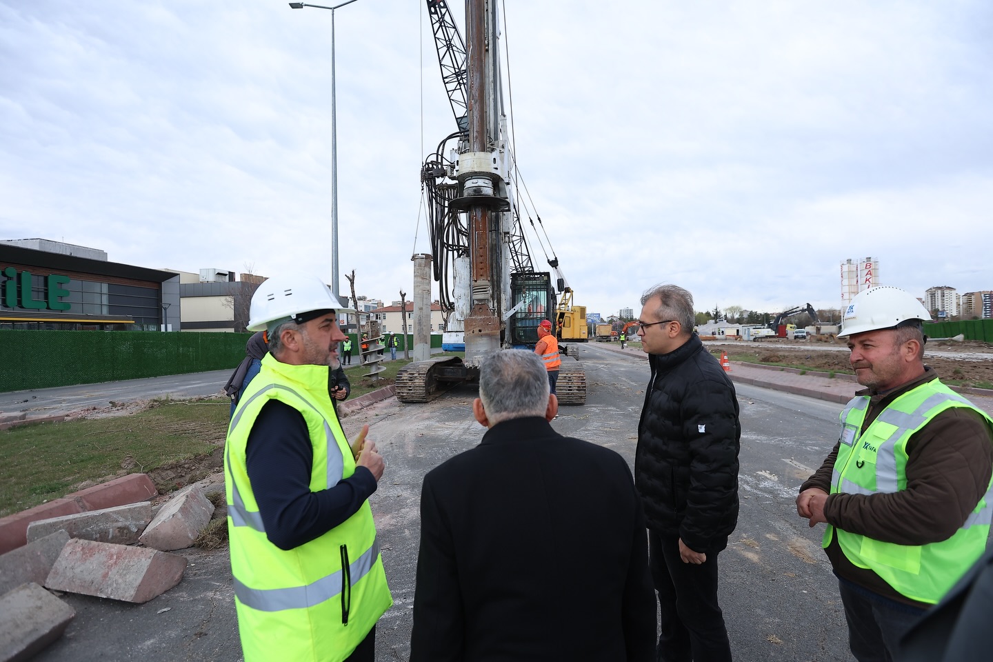 Büyükkılıç, Kartal Katlı Kavşağı projesinde sürdürülen çalışmalarda yüklenici firmanın ekip ve ekipmanlarıyla gece, gündüz esasına göre faaliyet yürüttüğünü gözlemledi. Başkan Büyükkılıç'a incelemeler esnasında Büyükşehir Belediyesi Genel Sekreter Yardımcısı Ufuk Sekmen de eşlik etti.