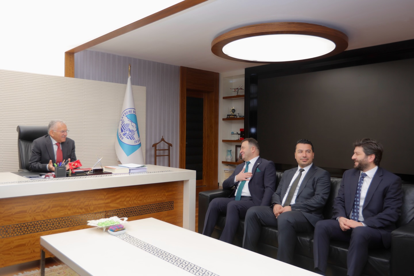 Geçtiğimiz günlerde Kayseri Organize Sanayi Bölgesi’nde yapılan genel kurulun ardından yeniden başkanlığa seçilen Mehmet Yalçın ile yönetim kurulu üyeleri, Büyükşehir Belediye Başkanı Dr. Memduh Büyükkılıç’a nezaket ziyaretinde bulundu. Başkanlık makamında gerçekleşen ziyaretten duyduğu memnuniyeti dile getiren Başkan Büyükkılıç, Kayseri’nin üretim ve sanayi gücünün lokomotifi konumundaki OSB’nin şehrin ekonomik kalkınmasındaki kritik rolüne dikkat çekti. Yalçın ve yönetimini tebrik eden Büyükkılıç, “Kayseri’mizin üretim gücüne yön veren OSB Yönetim Kurulu Başkanlığına yeniden seçilen Sayın Mehmet Yalçın ve kıymetli yönetimini belediyemizde ağırlamaktan memnuniyet duyduk. ‘Üretim şehri Kayseri’ vizyonumuzu daha ileriye taşıyacak her adımda birlik ve dayanışma içerisinde olmaya devam edeceğiz” ifadelerini kullandı. Başkan Büyükkılıç, yerel yönetim ile sanayi iş birliğinin güçlenerek süreceğini vurgulayarak, nazik ziyaretlerinden dolayı Yalçın ve yönetimine teşekkür etti, yeni dönemde başarılar diledi. OSB Yönetim Kurulu Başkanı Mehmet Yalçın ise Başkan Büyükkılıç’a sanayi ve ticaret alanındaki destekleri ile misafirperverliğinden dolayısıyla teşekkür etti.
