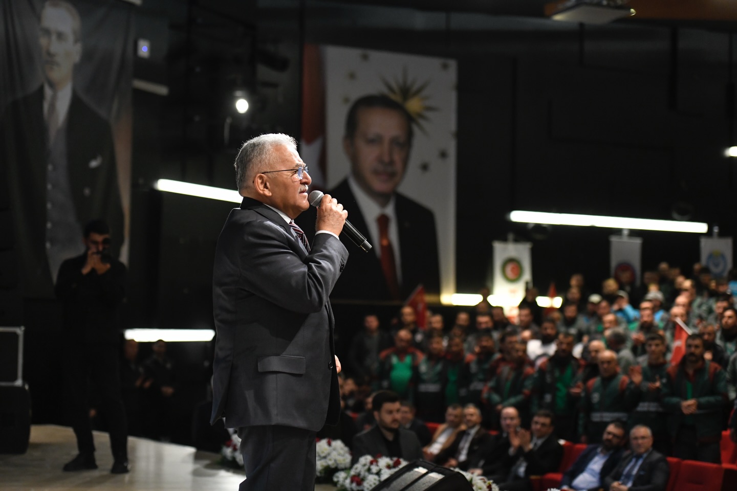 Kayseri belediyelerinin çalışanları ile gurur duyduğunu da vurgulayan Büyükkılıç, belediyelerin işçi ve emekçinin çalışmaları ile yatırım ve hizmet ürettiklerinin altını çizerek, “İnşallah hep beraber el ele vermek suretiyle şehrimiz daha iyi noktalara taşıyacağız. Sayın Cumhurbaşkanımız Recep Tayyip Erdoğan liderliğinde bu şehrimizi, bu ülkemizi daha ileri noktalara taşıyacağız” şeklinde konuştu.