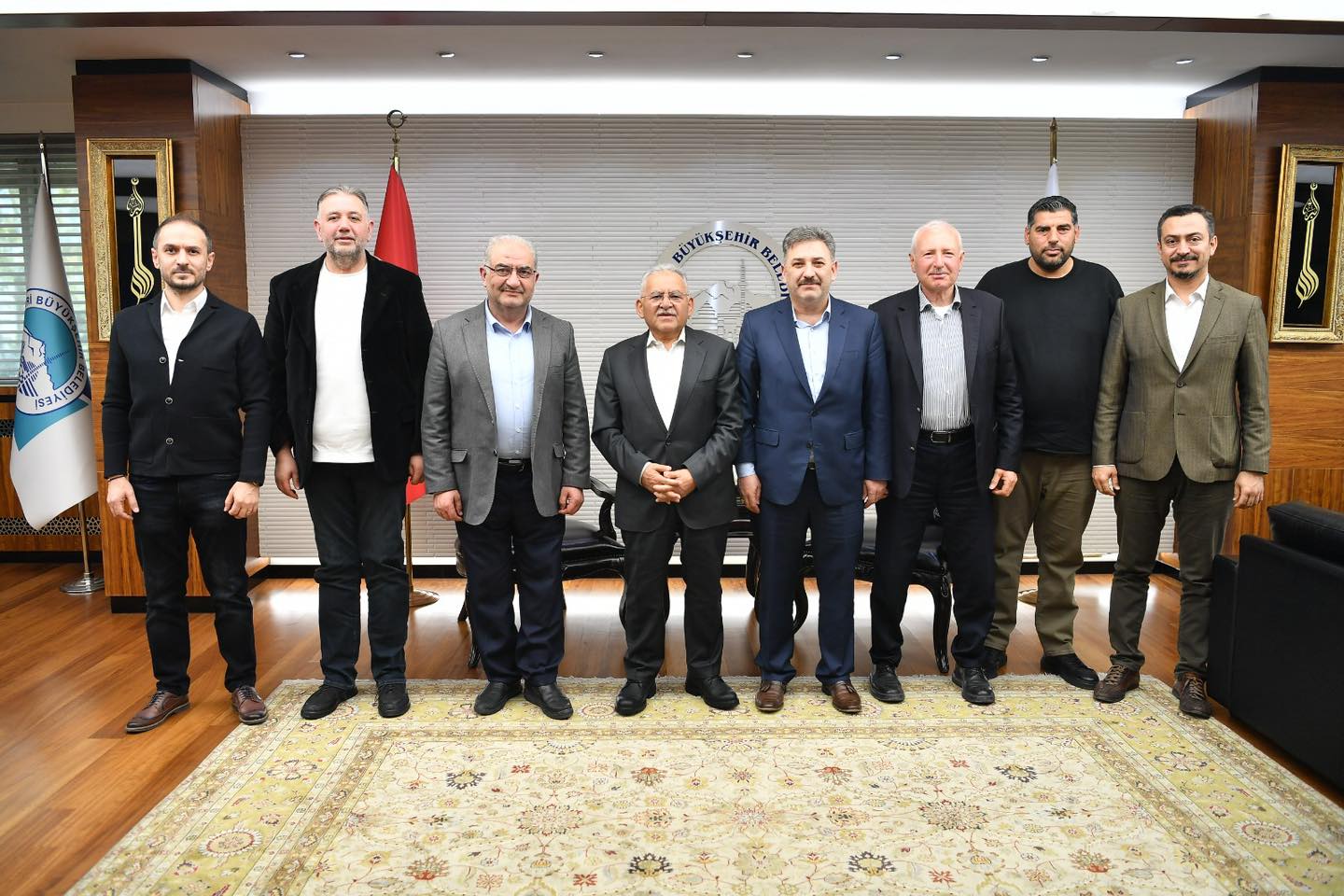 Başkan Büyükkılıç’ın, Kayseri’ye hizmet noktasında ortak akıl ve istişareye verdiği önemin bir yansıması olarak Büyükşehir Belediyesi’nde haftanın ikinci iş gününde yoğun bir ziyaretçi trafiği yaşandı.Konuklarını ayrı ayrı makamında kabul eden Büyükkılıç, tüm misafirleri ile yakından ilgilendi. Başkan Büyükkılıç, ilk olarak Kayseri Cumhuriyet Başsavcısı Habib Korkmaz ve Başsavcı Vekili Ömer Demirgöz’ü konuk etti. Büyükkılıç daha sonra Kayseri Minibüsçüler ve Servis İşletmecileri Esnaf Odası Başkanı Yavuz Ay ve yönetimini başkanlık toplantı salonunda kabul etti. Nazik ziyaretleri için Ay ve yönetimine teşekkür eden Büyükkılıç, misafirlerine çalışmalarında kolaylıklar diledi.İl Tarım ve Orman Müdürü Bülent Saklav ile Damızlık Manda Yetiştiricileri Birliği Başkanı Ahmet Topçu da Başkan Büyükkılıç’ı ziyaret etti. Başkan Büyükkılıç, ziyaretlerinden dolayı Saklav ve Topçu’ya teşekkür ederek, “Şehrimizin tarım ve hayvancılık alanındaki gelişimine katkı sunacak verimli bir istişare gerçekleştirdik. Nazik ziyaretleri için kendilerine teşekkür ediyorum” ifadelerini kullandı.Büyükkılıç, Yahyalı Kaymakamı İbrahim Gültekin ve Yahyalı Belediye Başkanı Esat Öztürk’ü de makamında kokun etti. Ziyareti değerlendiren Başkan Büyükkılıç, “Yahyalı Kaymakamımız Sayın İbrahim Gültekin ve Yahyalı Belediye Başkanımız Sayın Esat Öztürk belediyemizi ziyaret etti. Yahyalı’mızın gelişimi, devam eden ve planlanan yatırımlar üzerine verimli istişarelerde bulunduk. Nazik ziyaretleri ve kıymetli değerlendirmeleri için kendilerine teşekkür ediyorum” diye konuştu.Haftanın ikinci iş gününde Büyükşehir Belediyesi’nde yaşanan ziyaretçi trafiğinde; Argıncık Toptan Gıdacılar ve İmalatçılar Derneği Başkanı Tamer Aykurt, esnaflar Halil Karakeçeli ve Mustafa Karakeçeli, Kayseri Hal İşletmesi A.Ş. Yönetim Kurulu Başkanı Sinan Taşpınar ve hal yönetimi, Mimarsinan Organize Sanayi Bölgesi Yönetim Kurulu Başkanlığı görevini yürüten ve 9 Mayıs’ta yapılacak genel kurulda yeniden aday olan Lütfi Çarşıbaşı ve yönetim kurulu üyeleri ile Tomarza ilçesi Karacaören Mahallesi Muhtarı Asker Erbay ve Özel Halk Otobüsçüleri Odası Yönetimi Büyükkılıç tarafından ayrı ayrı misafir edildi.Kayseri Büyükşehir Belediye Başkanı Dr. Memduh Büyükkılıç, AK Parti Kayseri Gençlik Kolları İl Başkanı Kemal Yiğit Güler ve yönetimini de makamında kabul etti.Ziyarette gençlere ayrı bir önem verdiklerini ve gençleri önceleyerek hizmetlerini sürdüreceklerini kaydeden Başkan Büyükkılıç, “Gençlerimizin enerjisi, azmi ve ışığı geleceğimizin en güçlü teminatı. Her zaman yanlarında olmaya, onların heyecanına ortak olmaya devam edeceğiz. Nazik ziyaretleri için kendilerine teşekkür ediyor, çalışmalarında başarılar diliyorum” şeklinde konuştu.Ortak akıl ve istişare kültürü çerçevesinde gerçekleşen tüm ziyaretlerin ardından misafirleri Büyükkılıç’a, ilgi alakaları ve kente olan hizmetlerinden dolayı teşekkürlerini ilettiler.