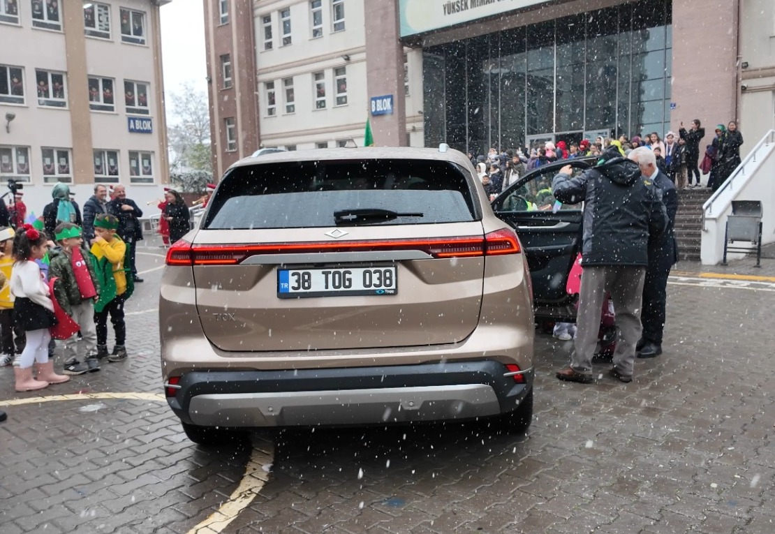 Kayseri Talas Yüksek Mimar Selçuk Karakimseli İlkokulu’nda 12-18 Aralık Yerli Malı Haftası etkinlikleri kapsamında anlamlı bir organizasyona imza atıldı. Kayseri Büyükşehir Belediyesi’ne gelen talep üzerine, Başkan Dr. Memduh Büyükkılıç’ın makam aracı olan yerli ve milli otomobil TOGG, okul bahçesine getirildi.