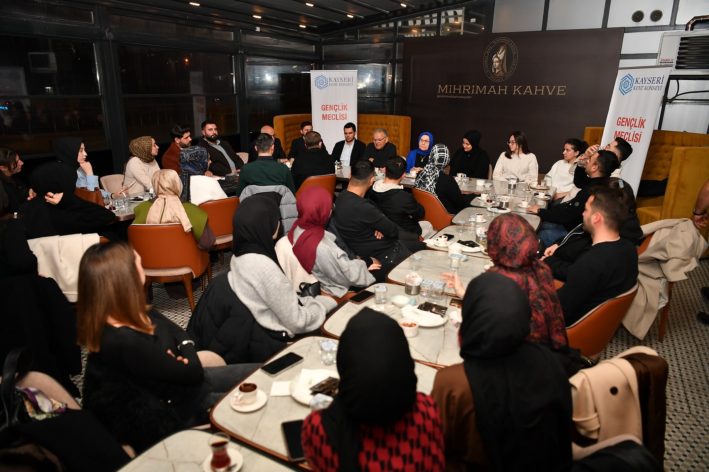 Gençlerin daveti üzerine bir araya geldiklerini belirten ve bu davetten duyduğu mutluluğu ifade eden Başkan Büyükkılıç, “Kayseri Kent Konseyi Gençlik Meclisi’ndeki gençlerimiz “Başkanım hep birlikte bir kahve içip sohbet edebilir miyiz?” dediler. Kıymetli eşim Necmiye Hanım ile birlikte bu güzel davete icabet ederek gençlerimizle bir araya geldik” dedi.