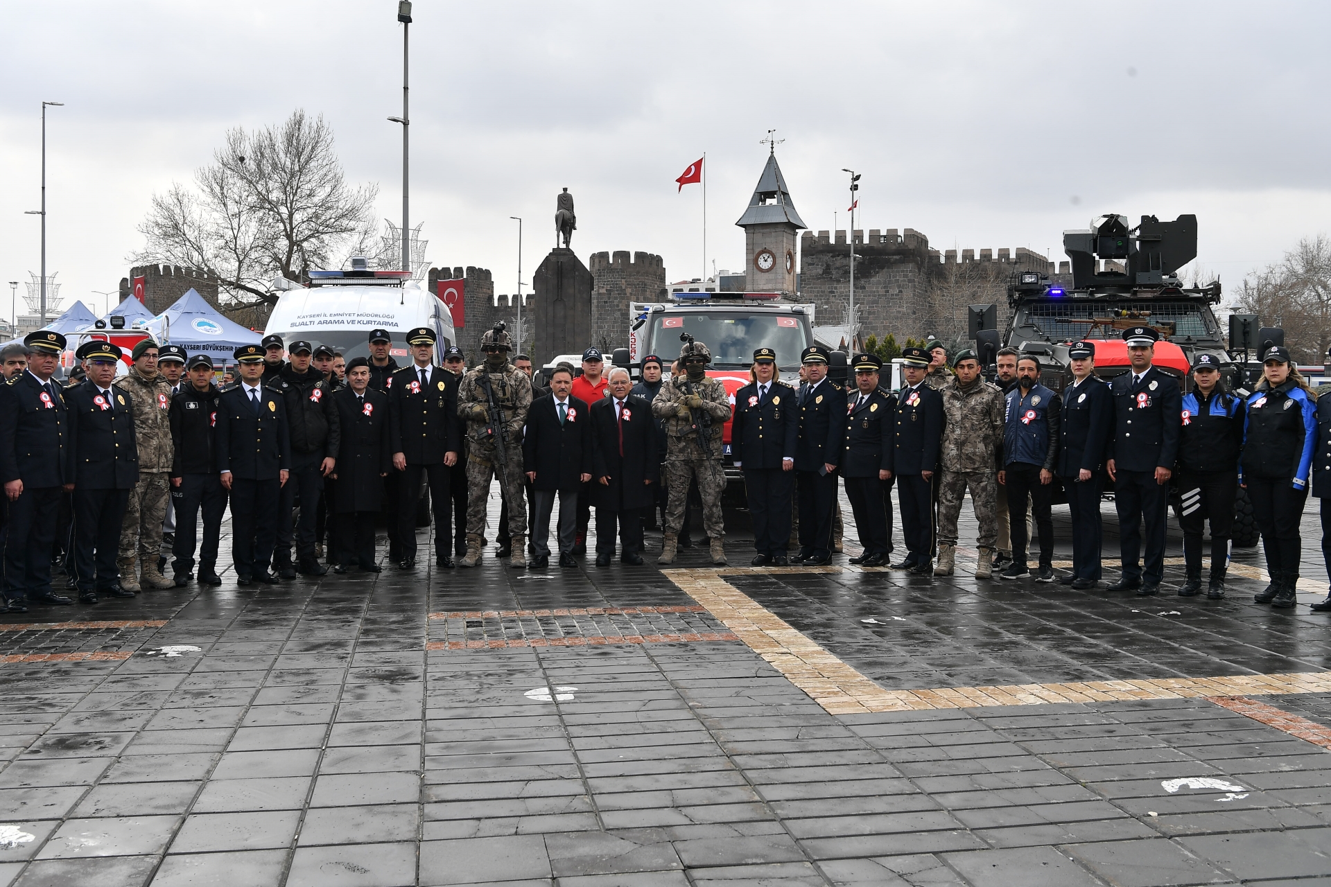 Kayseri Valisi Gökmen Çiçek de Türk Polis Teşkilatı’nın kuruluş yıl dönümü ve Polis Haftası’nı kutlayarak, “Tüm Türkiye’de Polis Haftası, halkımızın büyük bir katılımı ve büyük bir coşkuyla kutlanıyor. Kayseri’de de gerçekten farklı bir ortamda oluyor. Çünkü Kayserililerin kolluk kuvvetlerimize olan sevgisi hepinizin malumu” ifadelerini kullandı.