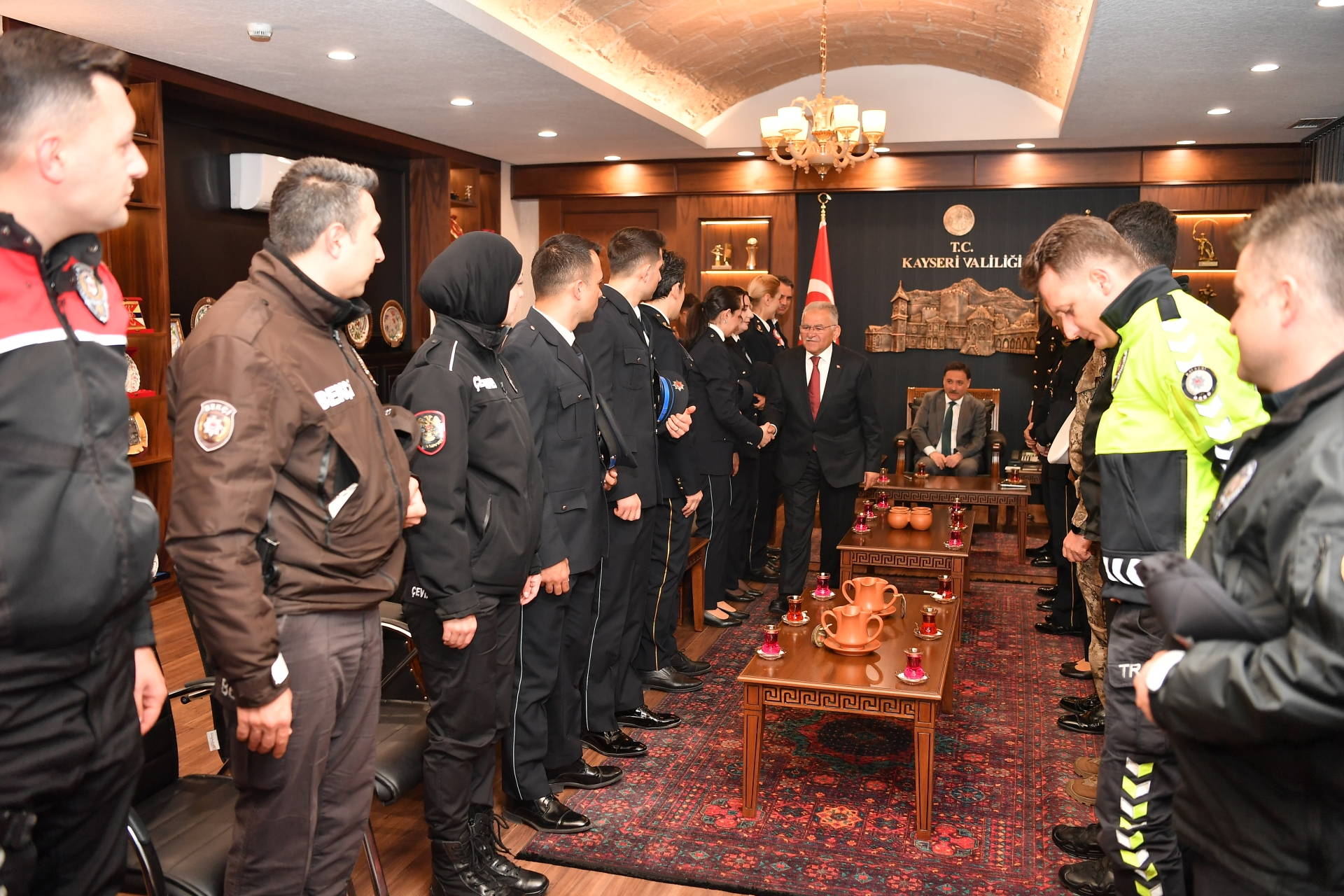 Büyükşehir Belediye Başkanı Dr. Memduh Büyükkılıç, Türk Polis Teşkilatı’nın 181’inci kuruluş yıl dönümü ve Polis Haftası etkinlikleri çerçevesinde İl Emniyet Müdürü Atanur Aydın ve emniyet teşkilatı mensuplarıyla birlikte Kayseri Valisi Gökmen Çiçek’i makamında ziyaret etti. Gerçekleşen ziyarette, emniyet teşkilatının toplum huzuru ve güvenliği için yürüttüğü özverili çalışmalar bir kez daha vurgulandı.