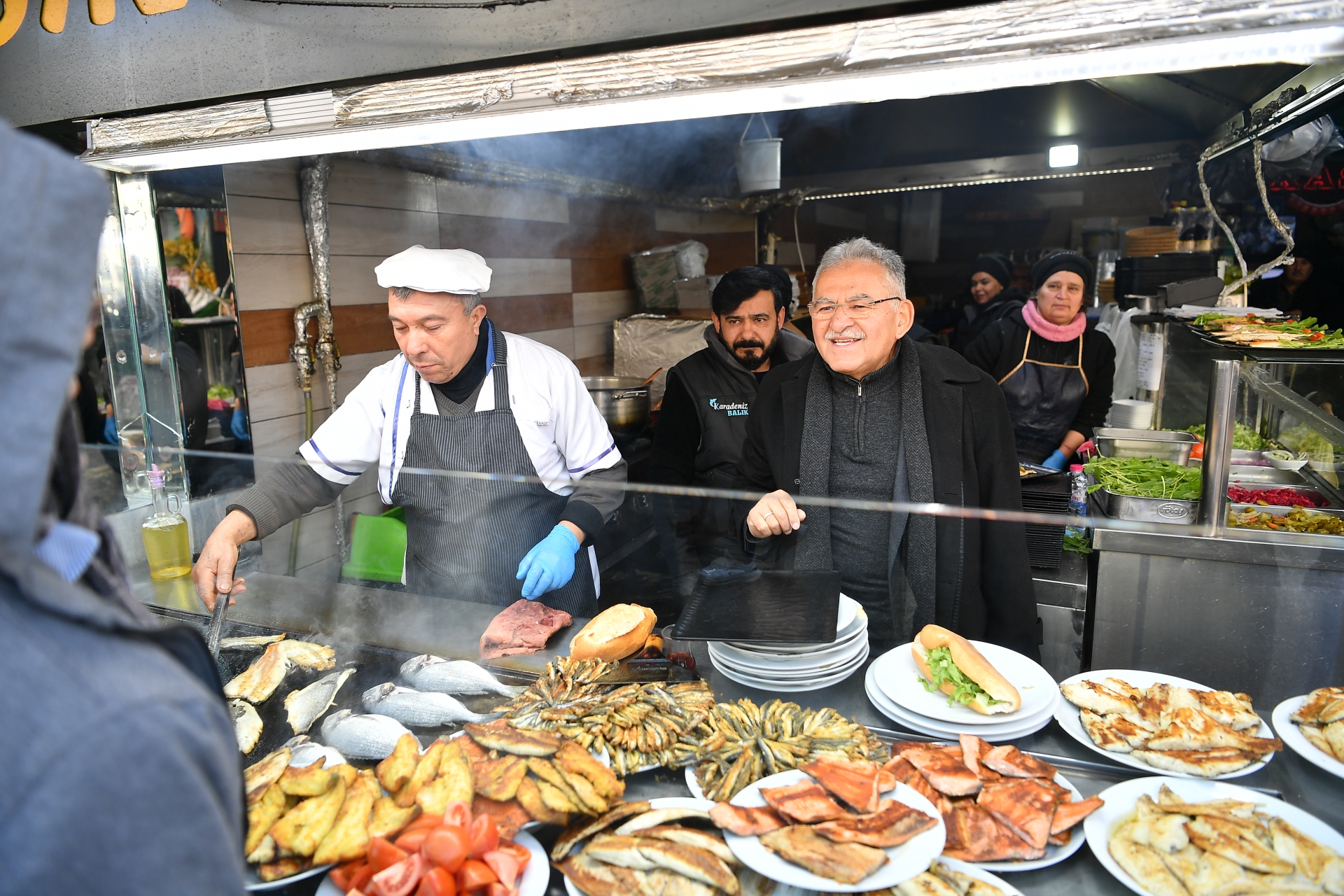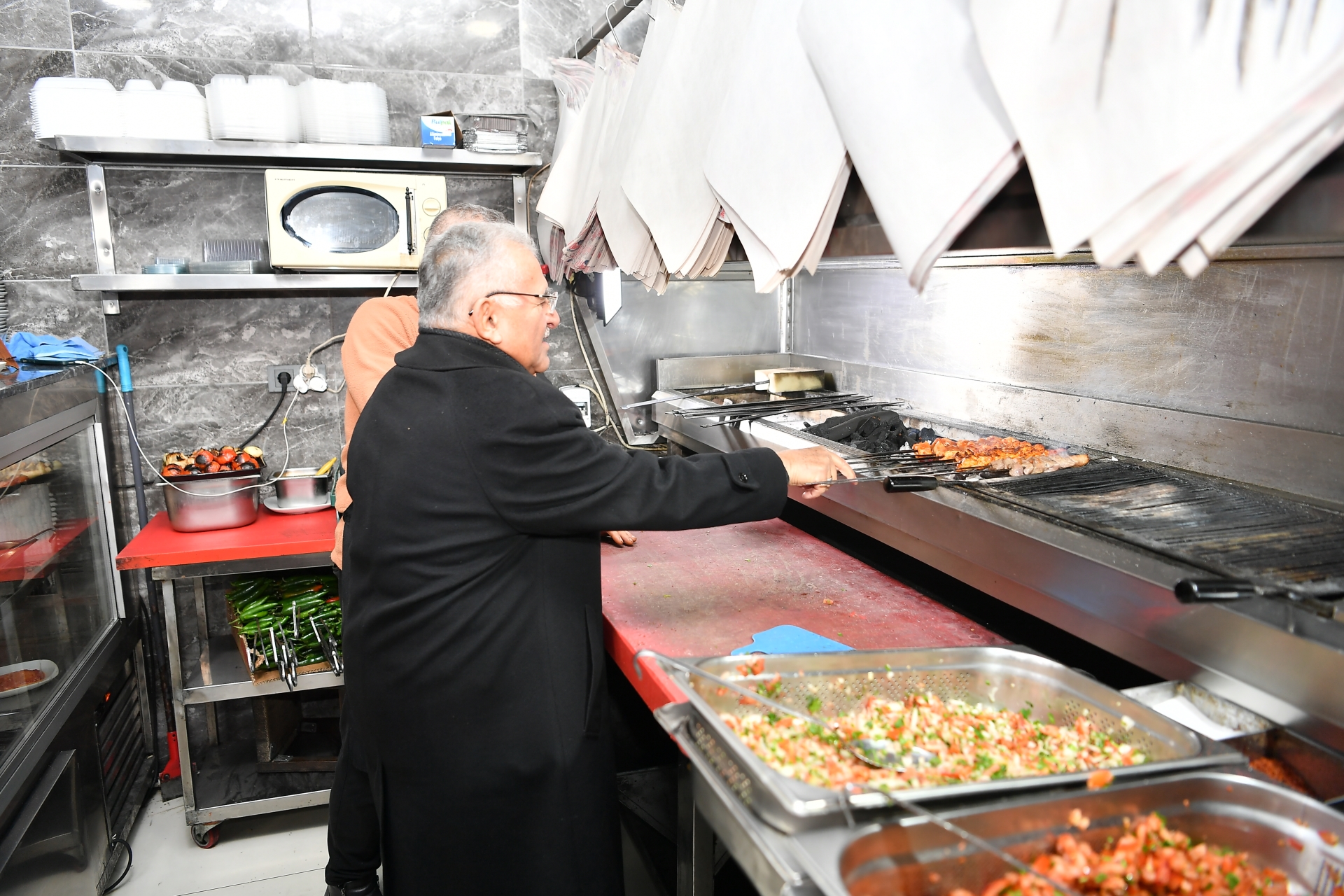Ziyaretinde esnaf ile sohbet eden, hayırlı ve bereketli kazançlar temennisinde bulunan Başkan Büyükkılıç, lokantada esnaf ile mangalın, balıkçıda tezgâh ile ızgaranın başına geçti ve vatandaşlarla ilgilendi. Büyükkılıç, giyim, bilişim, kozmetik ve diğer gıda dükkânlarına da ziyarette bulunarak hem esnafın durumunu hem de vatandaşların halini hatırını sordu.