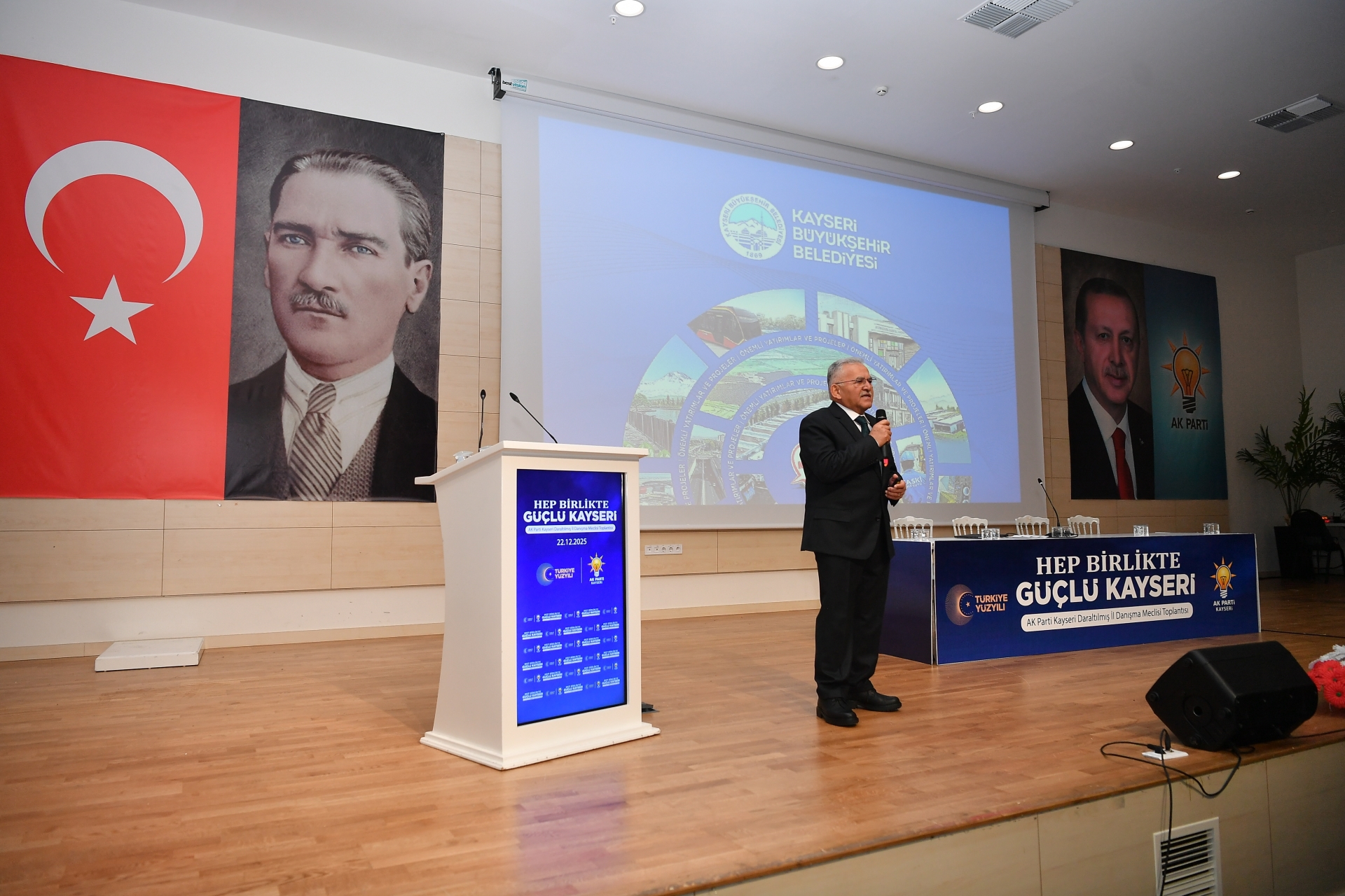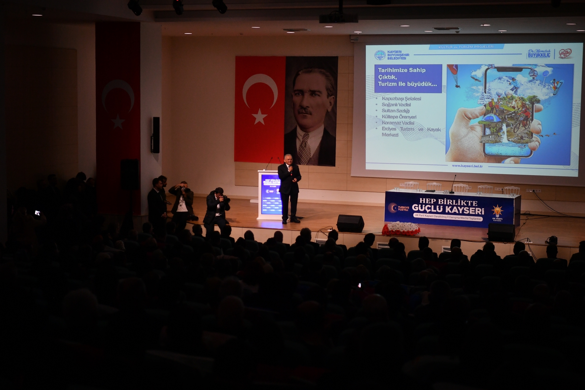 Başkan Dr. Memduh Büyükkılıç, Kayseri’nin imarı, ulaşımı, altyapısı, çevre yatırımları, sosyal belediyecilik ve kentsel dönüşüm başta olmak üzere birçok alanda hayata geçirilen yüzlerce çalışmadan önemli başlıkları teşkilat mensuplarıyla paylaştı.