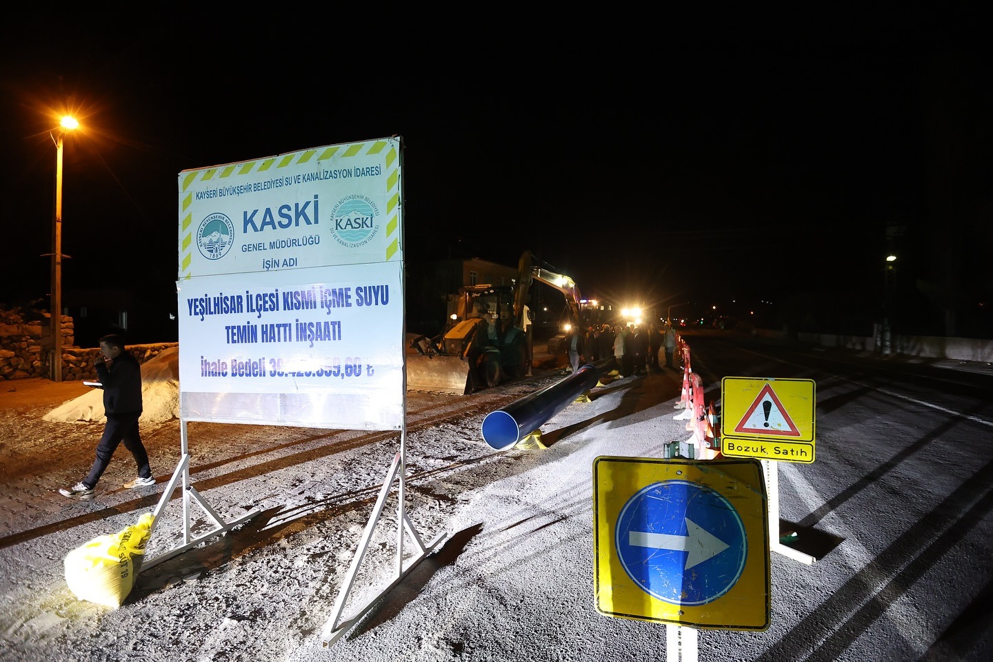 Bu kapsamda Yeşilhisar, Yahyalı ve Develi ilçelerindeki yatırımları yerinde incelemek için 3 ilçeye teknik gezi düzenleyen Büyükkılıç, Yeşilhisar ilçesi Çayırözü Mahallesi’nde KASKİ ekipleri tarafından yürütülen ve tamamlandığında Yeşilhisar’ın su problemini ortadan kaldıracak 31 kilometrelik boru hattı çalışmalarını akşamın ilerleyen saatlerine rağmen yerinde inceledi.
