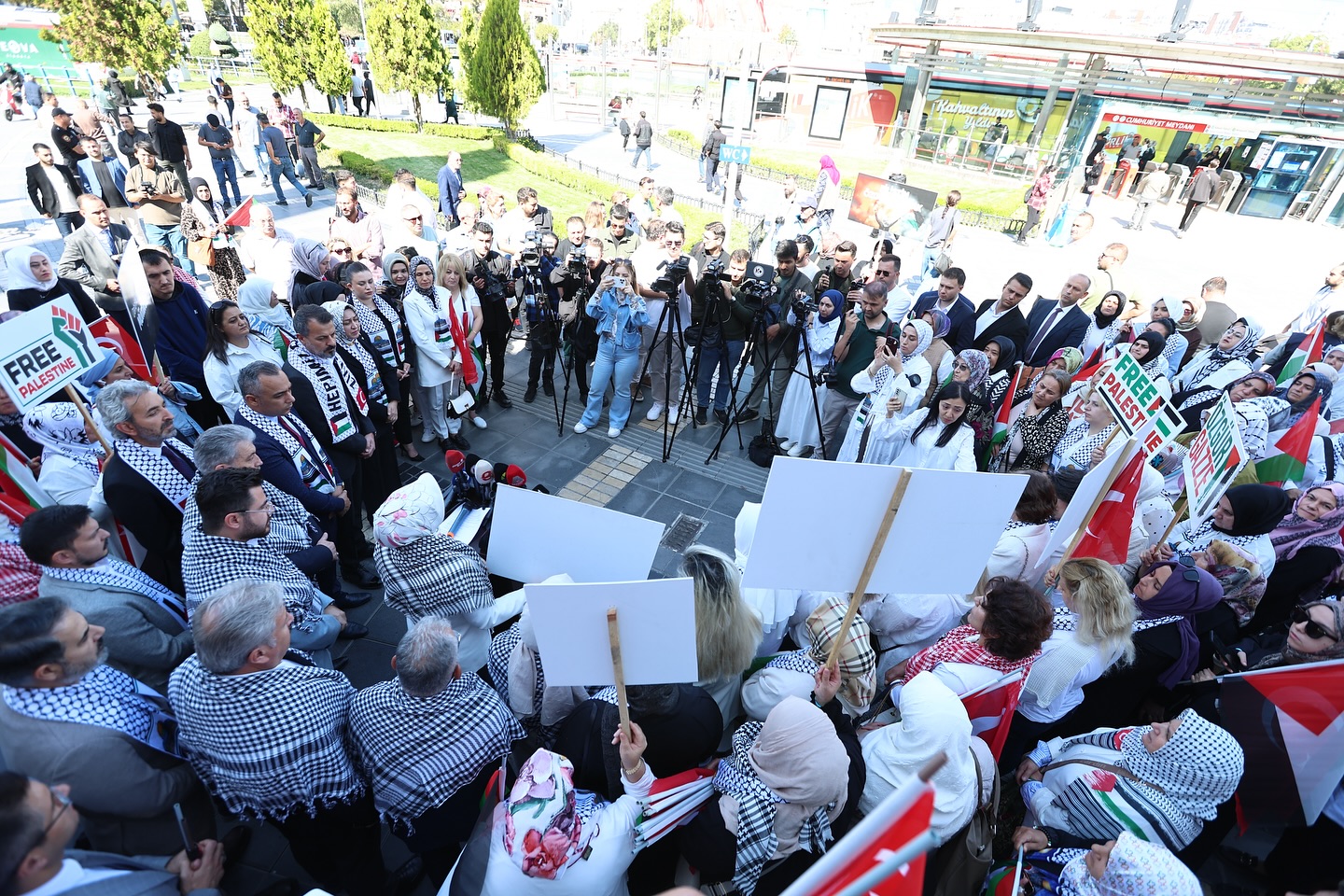 Kayseri Cumhuriyet Meydanı’ndaki Bürüngüz Camii önünde düzenlenen etkinliğe Başkan Büyükkılıç ve eşi Dr. Necmiye Büyükkılıç’ın yanı sıra AK Parti Kayseri Milletvekili Sayın Bayar Özsoy, AK Parti Kayseri İl Başkanı Hüseyin Okandan, Melikgazi Belediye Başkanı Mustafa Palancıoğlu, AK Parti Kayseri İl Kadın Kolları Başkanı Meral Koşar, Sivil Toplum Kuruluşu ve sendikaların temsilcileri ile çok sayıda vatandaş katıldı.