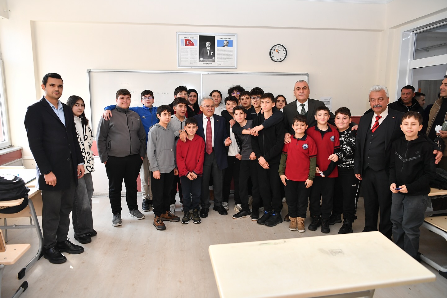 Okul girişinde öğrenciler tarafından çiçeklerle karşılanan Büyükkılıç, sınıfları gezerek, okulun öğretmenler odasında geleceğin mimarı öğretmenlerle bir araya geldi. Başkan Büyükkılıç, daha sonra okulun konferans salonuna geçerek program çerçevesinde buluştuğu gençler tarafından alkışlar eşliğinde coşkulu bir şekilde karşılandı.