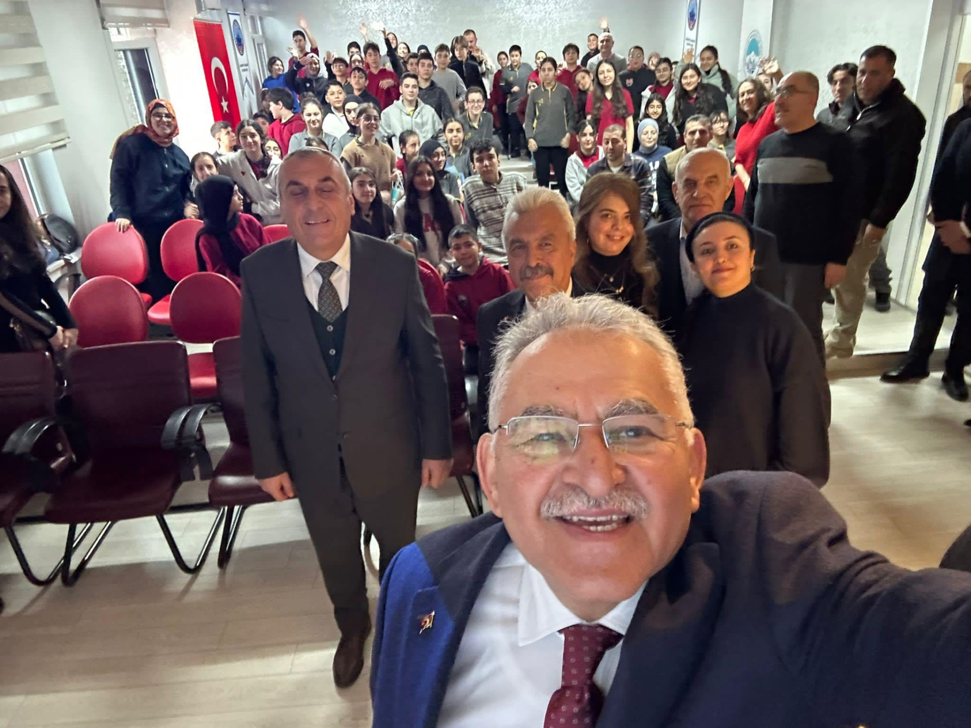 Kayseri’nin tarihi, kültürel ve doğal zenginlikleri hakkında da gençlere bilgiler veren Büyükkılıç, Erciyes Kayak Merkezi, büyük usta Mimar Sinan, Selçuklu Uygarlığı ve Gevher Nesibe Tıp Tarihi Müzesi gibi kadim kentin değerlerini öğrencilere anlattı ve sorduğu sorulara doğru cevap veren öğrencilere hediyeler verdi.