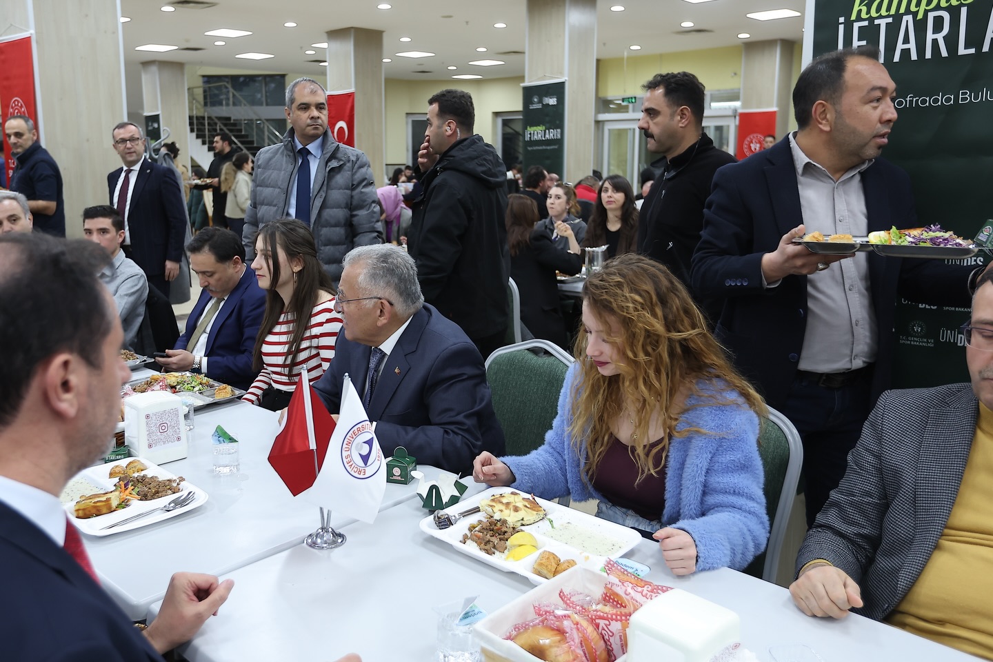 Gençlik ve Spor Bakanlığı tarafından Erciyes Üniversitesi Personel ve Öğrenci Yemekhanesi’nde düzenlenen Kampüs İftarları programına Başkan Büyükkılıç ve Kayseri Valisi Gökmen Çiçek’in yanı sıra Erciyes Üniversitesi Rektörü Prof. Dr. Fatih Altun, İl Emniyet Müdürü Atanur Aydın ve çok sayıda öğrenci katıldı.