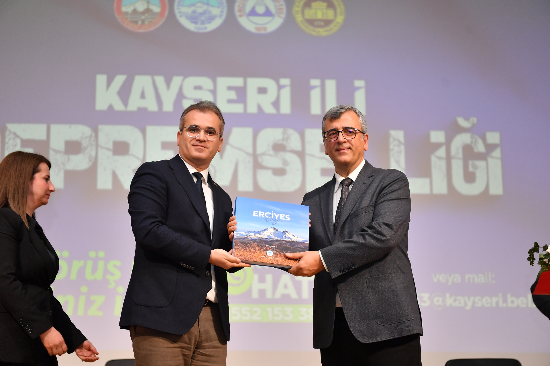 Gerçekleşen programa katılan Büyükşehir Belediyesi Genel Sekreter Yardımcısı Ufuk Sekmen ise konuk olan akademisyenlere Büyükşehir Kültür Yayınlarından olan Erciyes Dağı kitabını hediye etti.