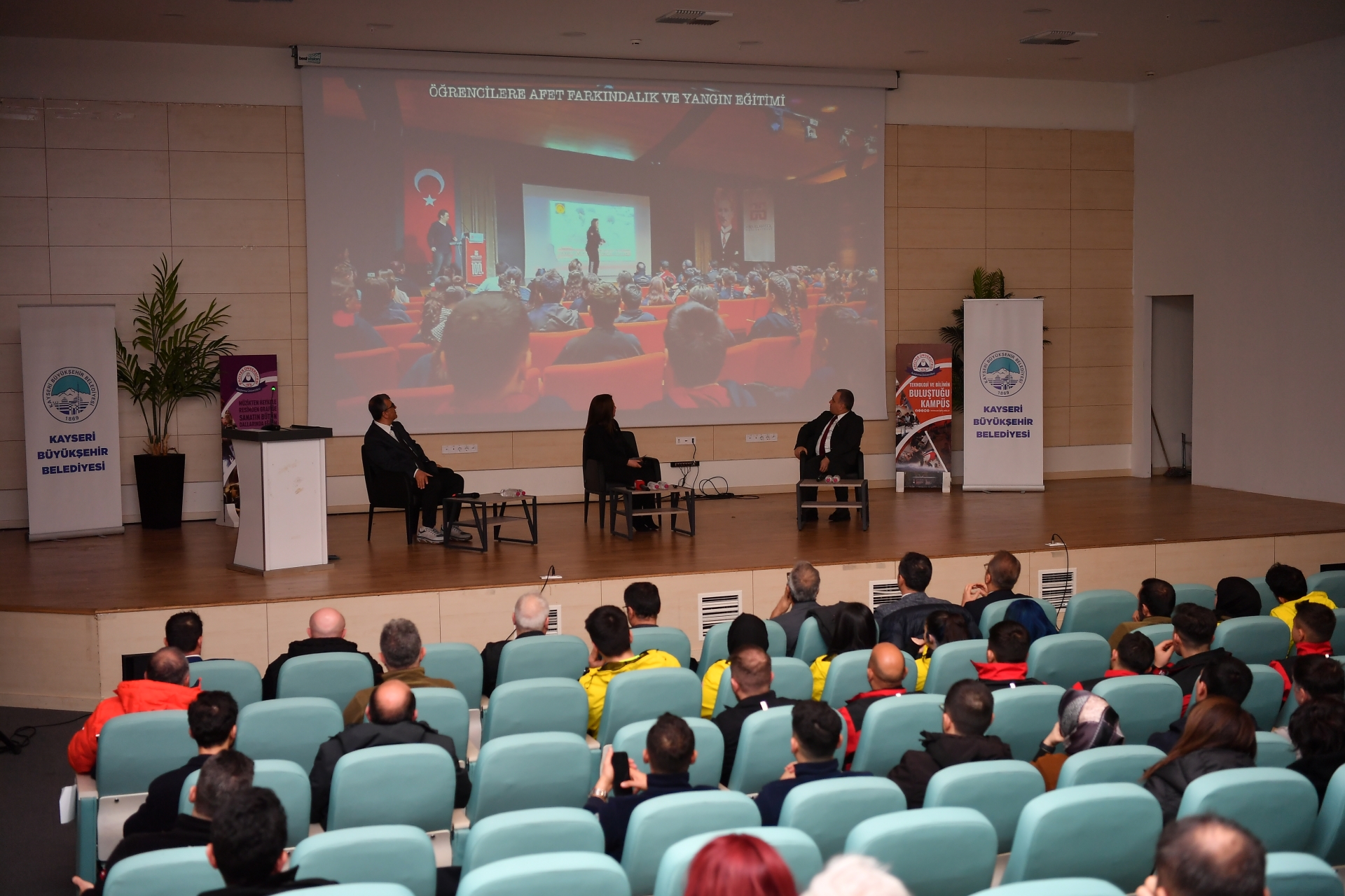 Erciyes Kültür Merkezi’nde düzenlenen, saygı duruşunda bulunulmasının ardından İstiklal Marşı’nın okunması ile başlayan ve Büyükşehir Belediyesi Afet İşleri ve Risk Yönetimi Daire Başkanı Gonca Arın’ın moderatörlüğünde gerçekleşen programa, Erciyes Üniversitesi Rektörü ve Mühendislik Fakültesi İnşaat Mühendisliği Bölümü Yapı Ana Bilim Dalı Öğretim Üyesi Prof. Dr. Fatih Altun ile İstanbul Üniversitesi, Cerrahpaşa Mühendislik Fakültesi Jeofizik Mühendisliği Bölümü Sismoloji Ana Bilim Dalı Öğretim Üyesi Prof. Dr. Ali Osman Öncel konuk olarak katıldı.