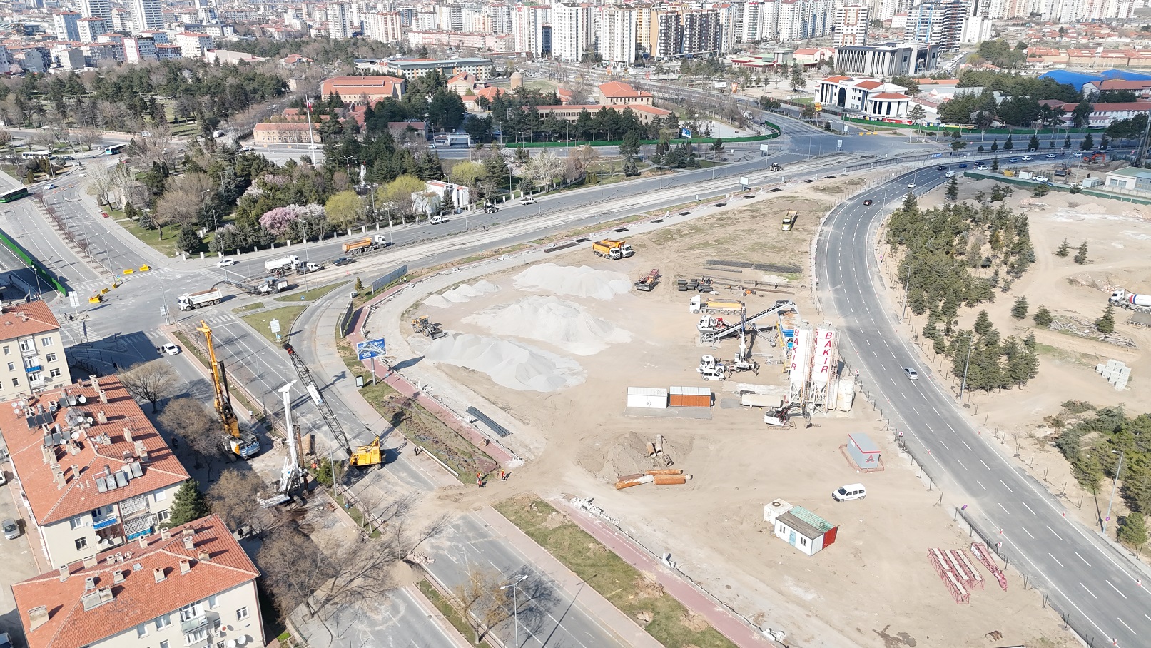 Proje sahasında ekipler, mevcut asfaltı özel kazıma makineleriyle yerinden sökerek geri dönüşüme kazandırırken, çevresel hassasiyet de ön planda tutuluyor. Kavşak çevresindeki ağaçlar titizlikle sökülerek farklı alanlara taşınıyor ve koruma altına alınıyor. Aynı anda altyapı güçlendirme çalışmaları kapsamında kazık çakma işlemleri sürdürülürken, kavşağın dört bir yanında yoğun ve koordineli bir çalışma yürütülüyor.