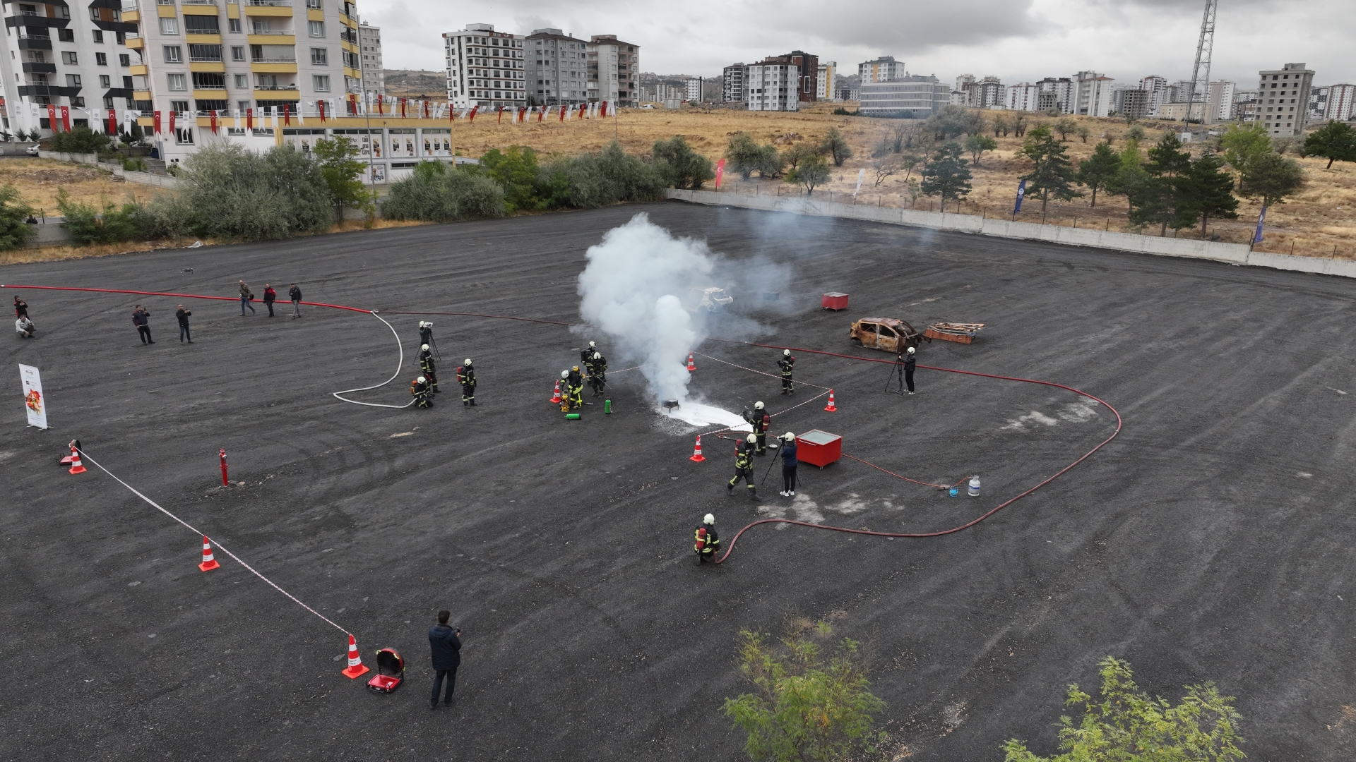 Kayseri Büyükşehir Belediyesi İtfaiye Daire Başkanlığı ev sahipliğinde saygı duruşunda bulunulması ve İstiklal Marşı’nın okunması ile başlayan tören ve tatbikata, Kayseri Büyükşehir Belediyesi Genel Sekreter Yardımcısı Ufuk Sekmen, Aspilsan Genel Müdürü Prof. Dr. Ahmet Turan Özdemir ve büyükşehirler ile il belediyeleri, çeşitli kurum ve kuruluşlardan yetkililer katıldı.