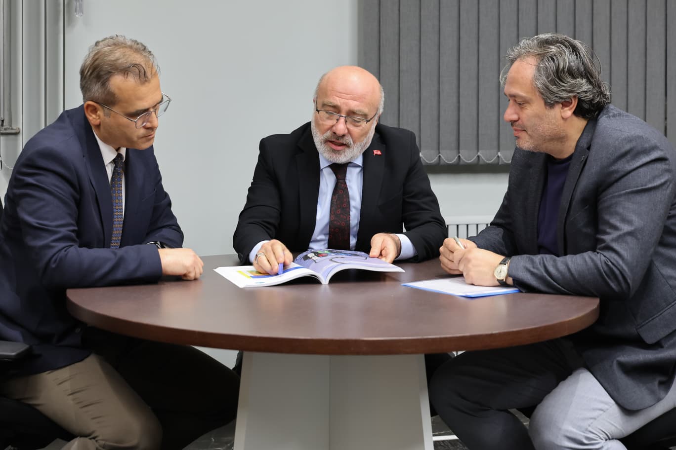 Rektör Prof. Dr. Karamustafa, Kayseri Büyükşehir Belediyesi Genel Sekreter Yardımcısı Ufuk Sekmen ile Kent Tarihi, Tanıtım ve Turizm Daire Başkanı Gürcan Senem, Kültür ve Turizm Bakanı Mehmet Nuri Ersoy’a yapılacak sunum öncesinde taslak plan üzerinde son değerlendirmelerini gerçekleştirdi.