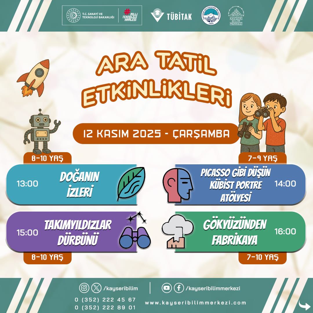 Detaylı bilgi ve kayıt için Kayseri Bilim Merkezi sosyal medya hesapları takip edilebilecek.