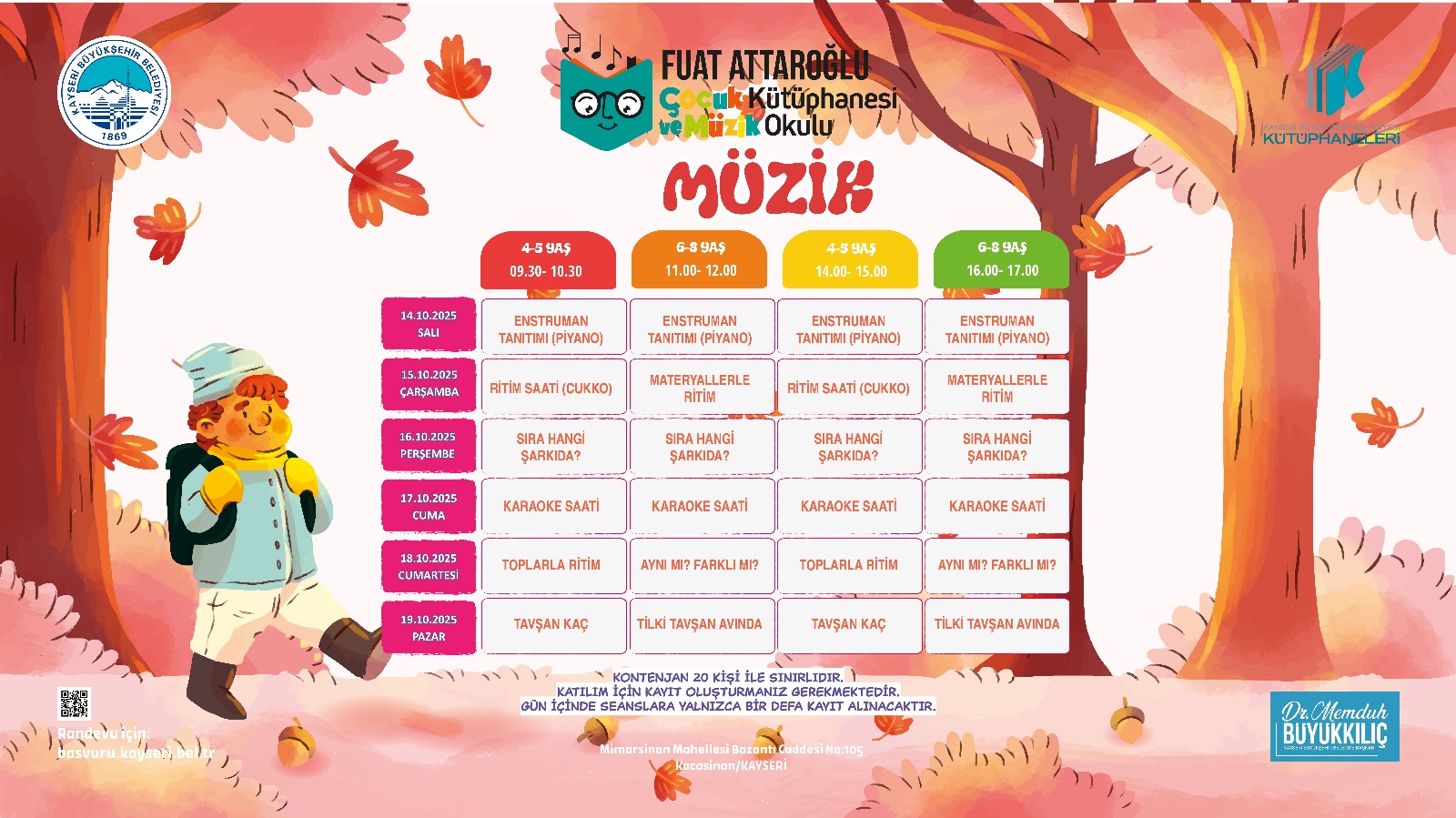 Bu çerçevede Büyükşehir Belediyesi’nin çocuklara özel kütüphanesi Fuat Attaroğlu Çocuk Kütüphanesi ve Müzik Okulu’nda zengin içeriklere sahip renkli atölye çalışmaları düzenleniyor. Minikler ve ailelerinden yoğun ilgi gören kütüphanede resim, sinema, müzik, oyun ve masal atölyeleri için www.kayseri.bel.tr internet adresi üzerinden online kayıtlar başladı.