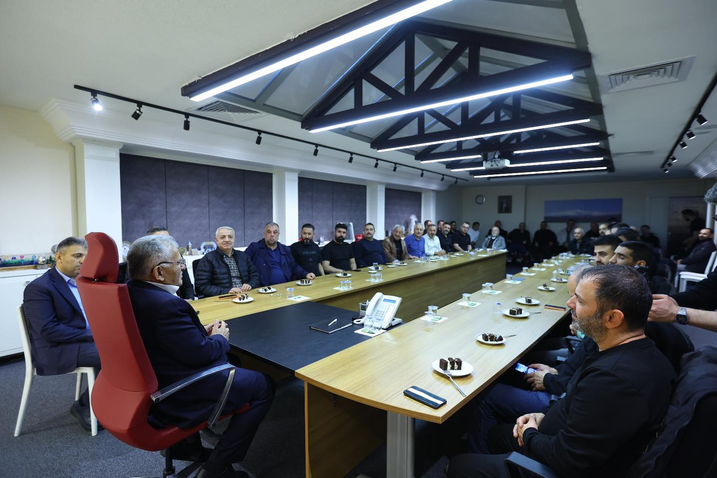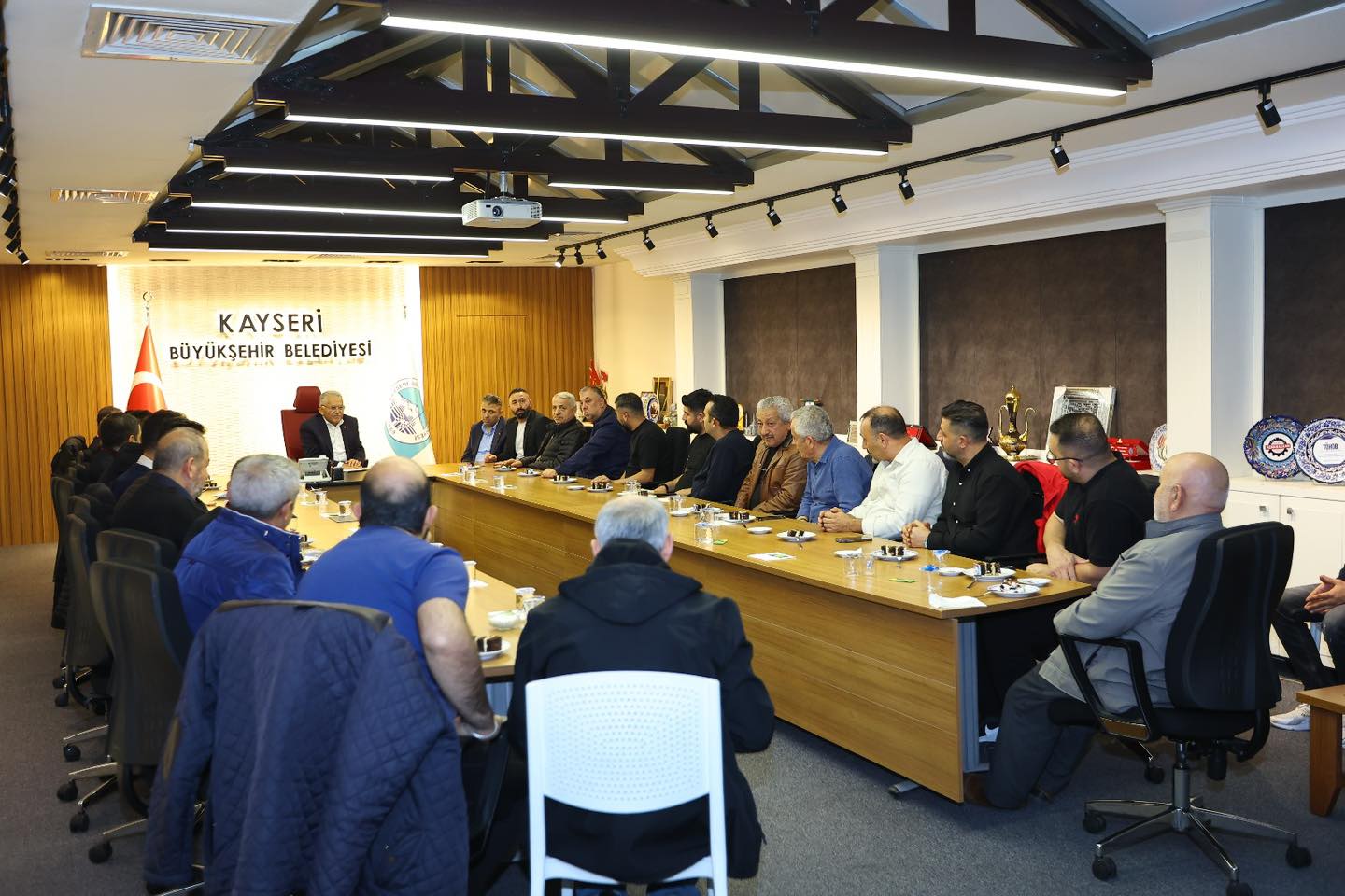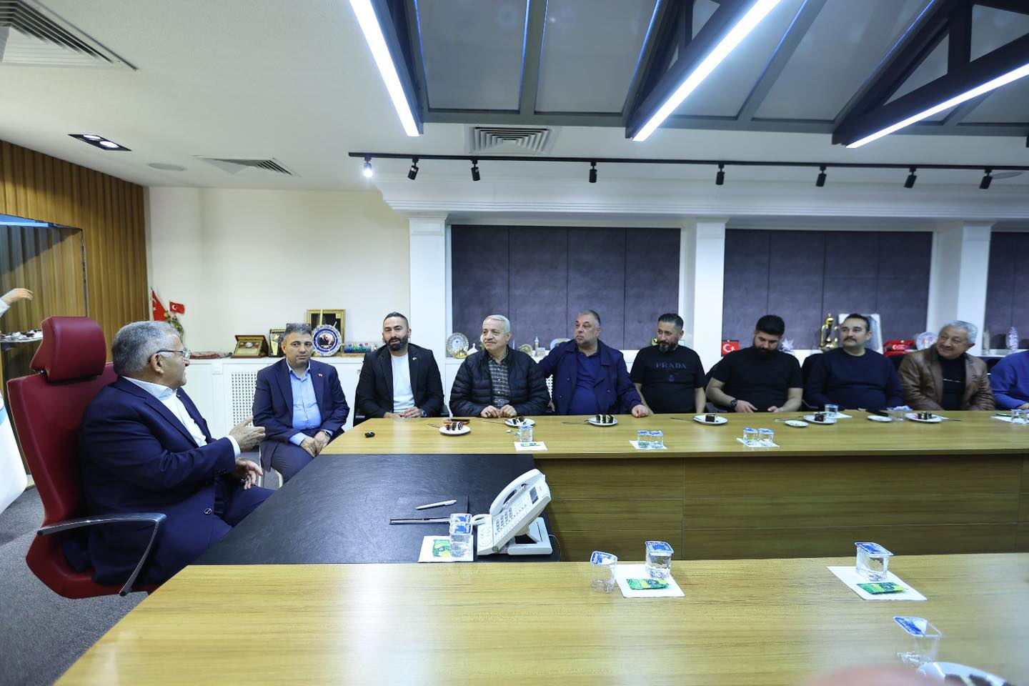 Büyükşehir Belediyesi Başkanlık Toplantı Salonu’nda gerçekleştirilen ziyarette, Yeraltı Çarşısı Yardımlaşma ve Dayanışma Derneği Başkanı Gökhan Gülen, dernek yönetimi ile esnaflar yer aldı.