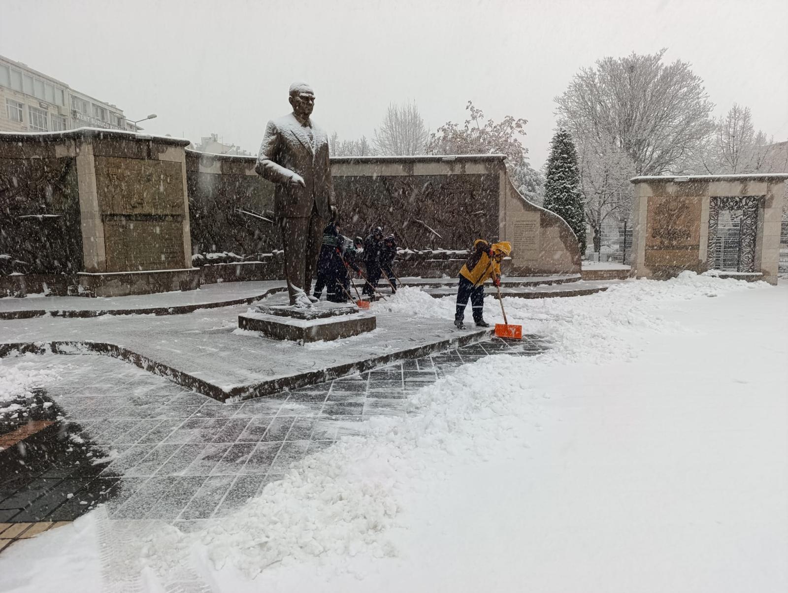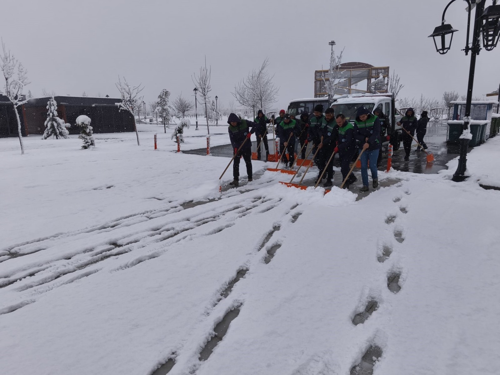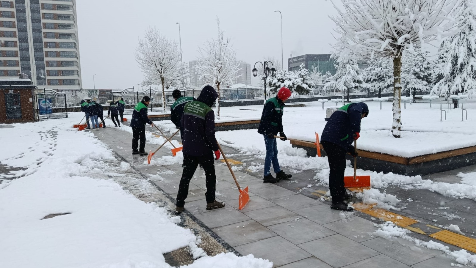 Park ve Bahçeler Daire Başkanlığı’na bağlı 132 personel de Cumhuriyet Meydanı, çarşı içi, Hunat bölgesi, balıkçılar önü, millet bahçesi ve çevresi, Valilik çevresi, Seyyid Burhaneddin Mezarlığı ve çevresi, raylı sistem hattı yaya geçitleri, Erciyes Dağı mıntıka bölgesi ile Mustafa Kemal Paşa Bulvarı yürüyüş yollarında ve sorumlu olduğu park, bahçelerde kar temizleme çalışmalarına devam ediyor.