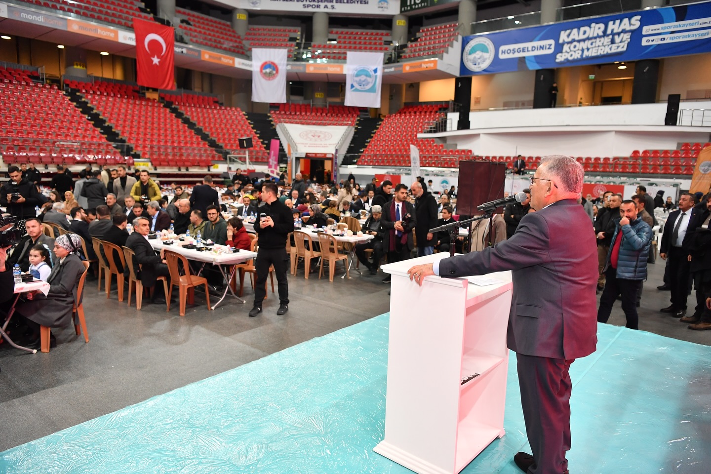 Kayseri Valiliği ve Büyükşehir Belediyesi tarafından Kadir Has Kongre ve Spor Merkezi’nde düzenlenen Büyük Aile Sofrası’nda Başkan Büyükkılıç, TBMM Milli Savunma Komisyonu Başkanı, AK Parti Kayseri Milletvekili Hulusi Akar ve Kayseri Valisi Gökmen Çiçek’in yanı sıra AK Parti MKYK Üyesi, Kayseri Milletvekili Dursun Ataş, AK Parti Kayseri İl Başkanı Hüseyin Okandan, Kayseri İl Müftüsü Durmuş Ayvaz, AK Parti Kayseri İl Kadın Kolları Başkanı Meral Koşar, Büyükşehir Belediyesi Genel Sekreter Yardımcısı Fatih Temaltaş, Türkiye Harp Malulü Gaziler Şehit Dul ve Yetimleri Derneği Kayseri Şube Başkanı Ali Yavuz, Türkiye Muharip Gaziler Derneği Kayseri Şube Başkanı Kasım Tutgun, ilçe belediye başkanları ile şehit aileleri, gaziler ve gazi aileleri katıldı.