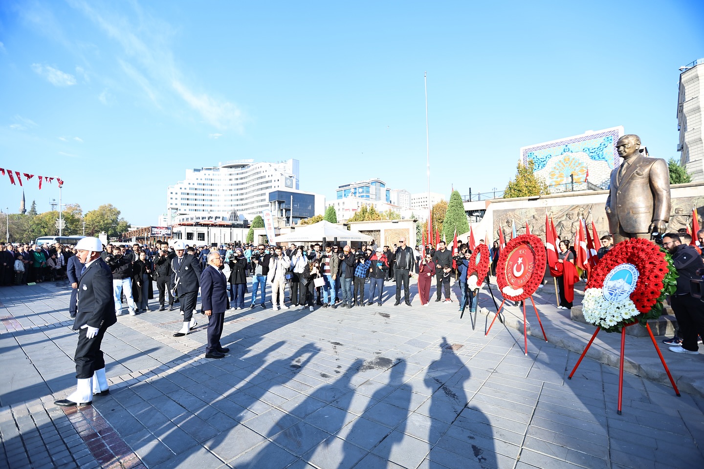Anma töreni, Vali Gökmen Çiçek, Garnizon Komutanı Hv.Plt.Tümg. Kadircan Kottaş ve Büyükşehir Belediye Başkanı Dr. Memduh Büyükkılıç’ın Türkiye Cumhuriyeti'nin kurucusu Gazi Mustafa Kemal Atatürk'ün vefat yıl dönümü dolayısıyla Cumhuriyet Meydanı'ndaki Atatürk Anıtı'na çelenk bırakmasıyla başladı.