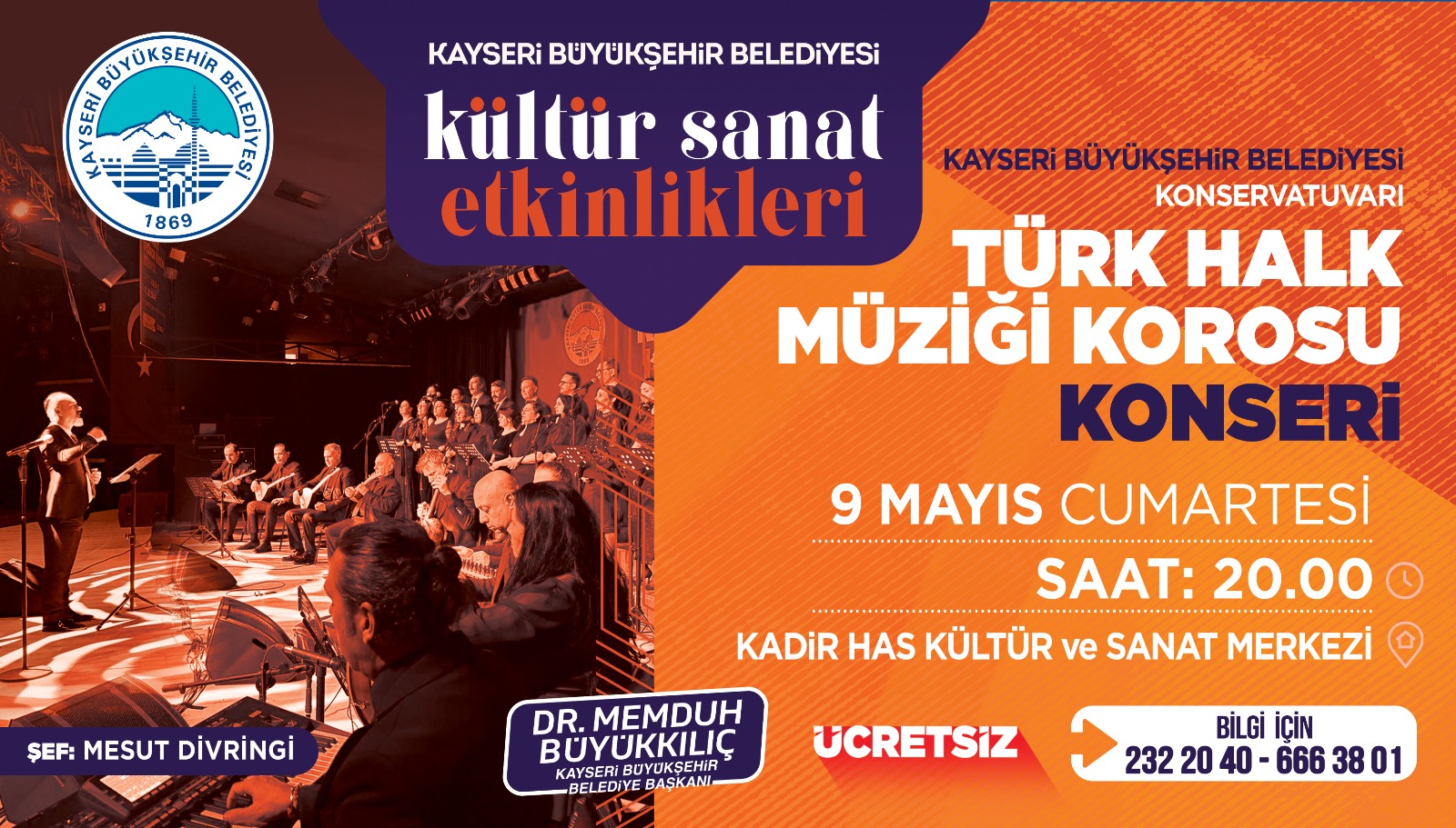 Kayseri Büyükşehir Belediyesi Konservatuvarımızın Türk Halk Müziği Korosu, Şef Mesut Divringi yönetiminde unutulmaz bir konser için siz kıymetli hemşehrilerimizle buluşuyor.