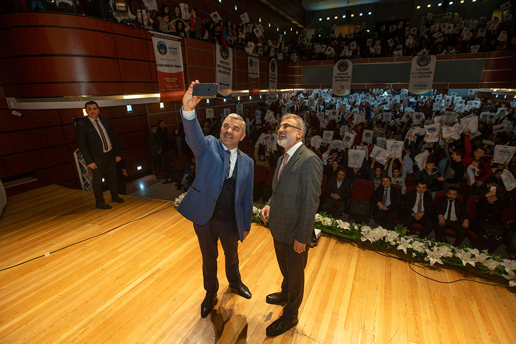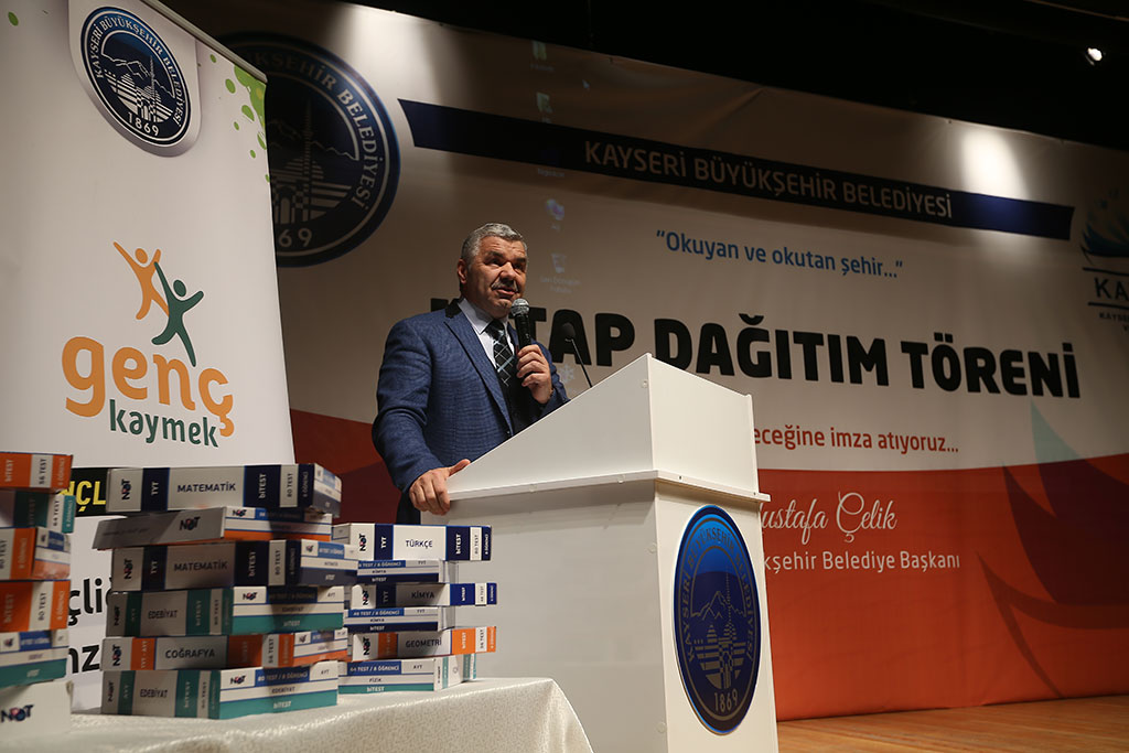 Kayseri Büyükşehir Belediyesi geleceğimiz olan gençler için oluşturduğu Genç KAYMEK ile başarı hikayeleri yazmaya devam ediyor. Büyükşehir Belediye Başkanı Mustafa Çelik ve Kayseri Milletvekili Taner Yıldız’ın da katılımıyla Genç KAYMEK’lerde sınavlara hazırlanan öğrencilere 17 bin yardımcı kitap dağıtıldı. Başkan Mustafa Çelik, burada yaptığı konuşmada evine misafir olduğu yetim bir çocuğun Genç KAYMEK’in de desteğiyle Tıp Fakültesi’ni kazandığını anlatarak insana yatırım ve özellikle gençliğe yatırımın önemini vurguladı. Büyükşehir Belediyesi’nin Genç KAYMEK öğrencilerine kitap dağıtımı programı Şehir Tiyatrosu’nda yapıldı. Büyükşehir Belediye Başkanı Mustafa Çelik ve Kayseri Milletvekili Taner Yıldız öğrenciler tarafında alkış ve tezahüratlarla karşılandı. “İNSANA YATIRIM İÇİN OLAN HER PRPOJEYİ DESTEKLEDİK” Gençlere hitap eden Büyükşehir Belediye Başkanı Çelik, insana yatırım konusuna her zaman öncelik ve önem verdiklerini ifade ederek, şehrimizi imar ederken insanımızı ihmal etmediklerini söyledi. İnsana yatırım konusunda gelen her projenin önünü açtıklarını ifade eden Başkan Çelik, bu konuda yapılan çalışmalardan bahsetti. 16 ilçemizin tamamında toplam 18 sosyal yaşam merkezi yaptıklarını dile getiren Başkan Çelik, sosyal yaşam merkezleriyle insanlarımıza pek çok imkan sunduklarını belirtti. Konuşmasında KAYMEK hizmetlerinden de bahseden Başkan Mustafa Çelik, “KAYMEK şirketimiz Anadolu’da marka haline geldi. Bosna Hersek’in Mostar şehri de dahil olmak üzere 16 ilçemizin tamamında 50’den fazla KAYMEK tesisinde 650 kişiyle hizmet veriyoruz. Sadece bu dönem 95 branşta 11 bin kursiyerimiz kurs alıyor. Genç KAYMEK’te 13 ayrı tesiste ilkokul 3. sınıftan mezun gruba kadar 11 bin öğrenciye ders veriyoruz. Bu imkanı sadece şehir merkezinde değil tüm ilçelerde sunuyoruz. KAYMEK bünyesindeki bir başka birimimiz olan Huzur Çınarı’nın ise tek görevi aile. Yaptığı çalışmalarla aileleri kurtarıyoruz. Bu faaliyetlerle sadece bu yıl 21 bin kişiye ulaştı” dedi. TIP FAKÜLTESİ’Nİ KAZANAN GENÇ KAYMEKLİ Büyükşehir Belediye Başkanı Çelik, bu yıl sınavlara hazırlanan 8. sınıftaki 1300 öğrenciye ve 12. Sınıf ile mezun gruplardaki 1100 öğrenciye 17 bin kitabı ücretsiz dağıtacaklarını dile getirerek gerçek gönül belediyeciliğinin bu çalışmalar olduğunu vurguladı. Başkan Çelik, konuşmasında Genç KAYMEK’teki başarı hikayelerinden sadece birisini de katılımcılarla paylaştı. Evine misafir olduğu yetim bir çocuğun Tıp Fakültesi’ne girdiğini dile getiren Başkan Çelik, ailelerden dua alan bir hizmet yaptıklarını kaydetti. “SADECE GENÇLİĞE DEĞİL ÜLKEMİZE DE YAPILAN BİR HİZMET” Kayseri Milletvekili Taner Yıldız da bir konuşma yaparak bu önemli hizmet nedeniyle teşekkür etti. Çalışmayı, gençliğimize ve geleceğimize yapılan önemli bir katkı olarak gören Taner Yıldız, “Bu yapılanlar çok büyük bir hizmet. 11 bin gencimize ulaşılmış. Bu çok önemli bir rakam. Mustafa Çelik Başkanımızın başarılı hizmetlerinin yanında son derece seçkin olan bu çalışmasını takdirle anıyorum. Sadece gençlerimize değil ülkemize de yapılan katkıdır” diye konuştu. Konuşmaların ardından Genç KAYMEK Gençlik Merkezi’nde eğitim gören öğrencilere yardımcı ders kitapları dağıtıldı. Büyükşehir Belediye Başkanı Mustafa Çelik, kitap dağıtımının ardından tüm öğrencilerle birlikte öz çekim yaptı.