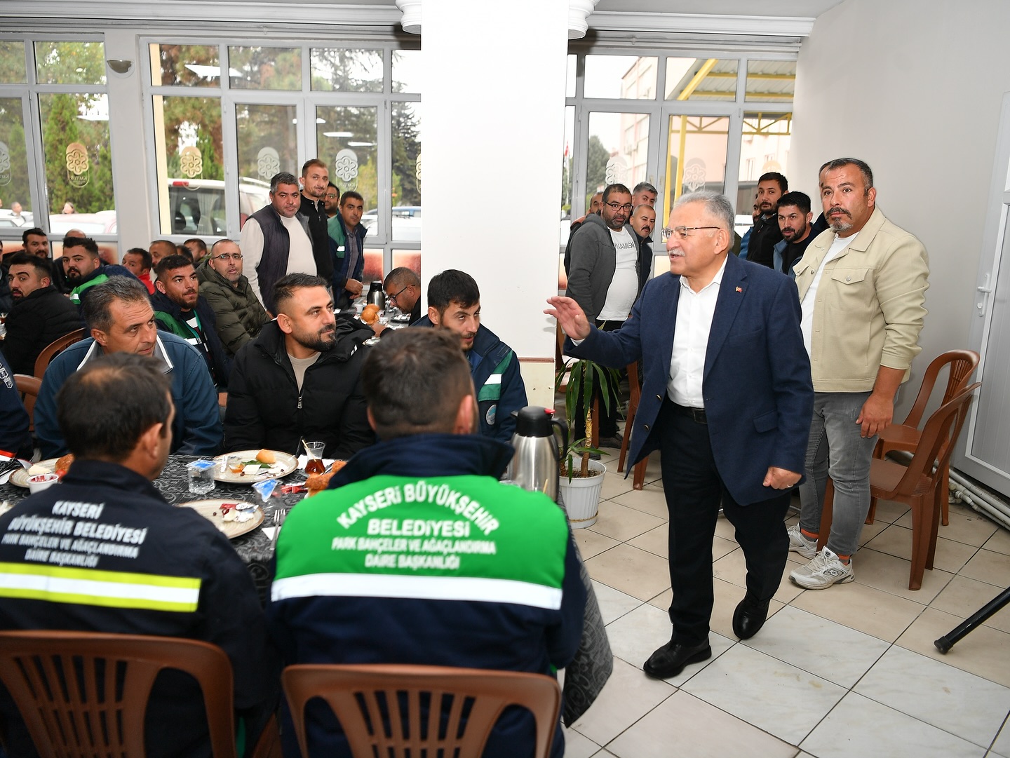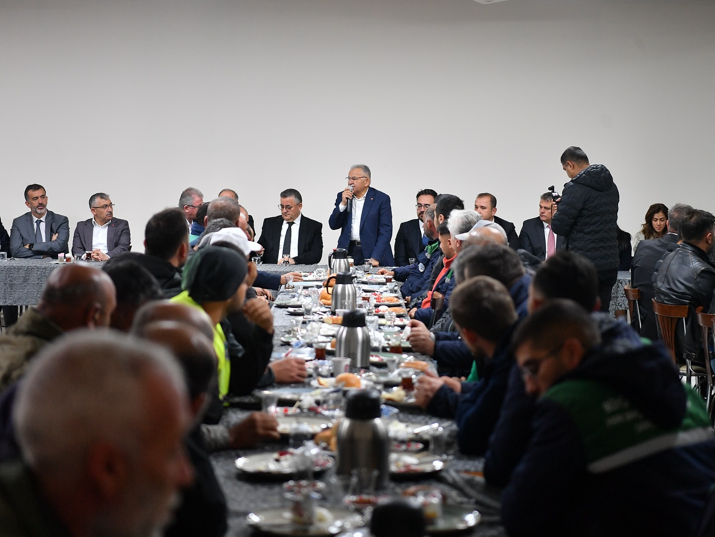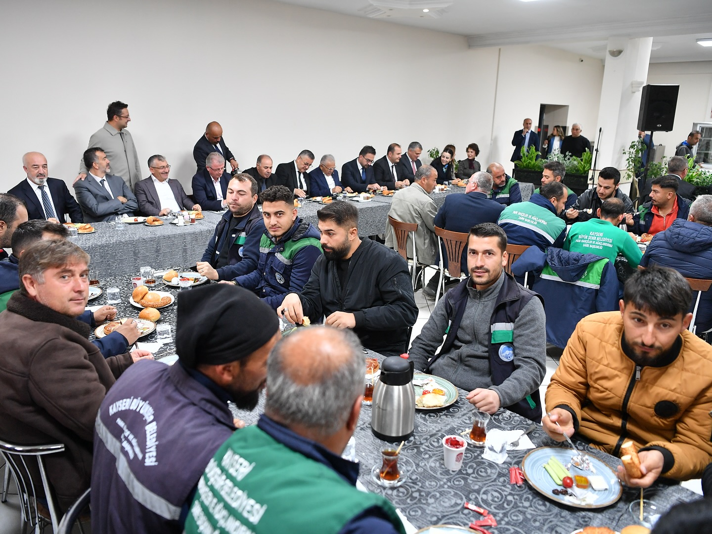 Kayseri Büyükşehir Belediye Başkanı Dr. Memduh Büyükkılıç, Büyükşehir Belediyesi Park ve Bahçeler Daire Başkanlığı personeli ile kahvaltıda bir araya geldi. Büyükkılıç, buluşmada yaptığı konuşmada personeline seslenerek, “Bugüne kadar yapmış olduğunuz, şehrimizin yüz akı olan hizmetlerden dolayı her birinize ayrı ayrı teşekkür ediyorum” dedi.