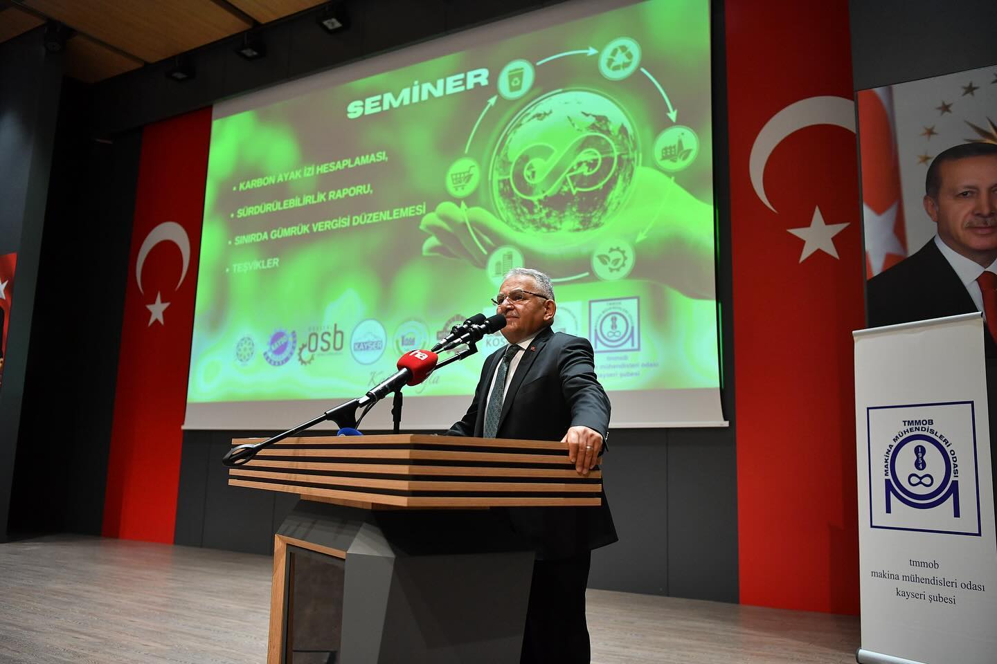 Kayseri Büyükşehir Belediye Başkanı Dr. Memduh Büyükkılıç, Kayseri Organize Sanayi Bölgesi’nde (KOSB) düzenlenen ‘karbon ayak izi’, ‘sürdürülebilirlik raporu’, ‘sınırda gümrük vergisi düzenlemesi’ ve ‘teşvikler’ konu başlıklarında düzenlenen seminere katıldı. Başkan Büyükkılıç, programda Büyükşehir Belediyesi’nin çevreye yönelik proje, çalışma ve yatırımlarını anlattı.
