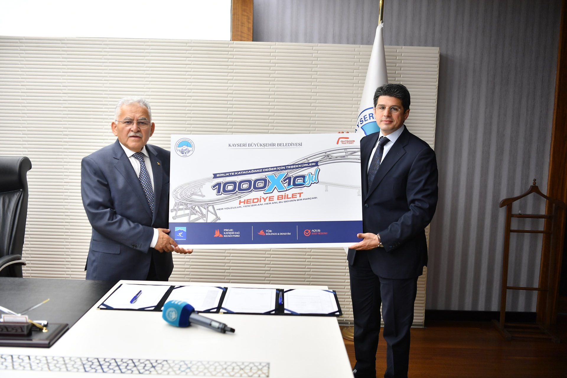 Öğrencilere yönelik sosyal bir uygulamayı da duyuran Büyükkılıç, “10 bin adet hediye bilet veriyoruz. Öğrencilerimizin dağ kızağından faydalanmasını sağlayacağız. Ekim ayının sonlarına doğru hayata geçmesi planlanıyor. Özellikle çocuk bayramlarında ve çeşitli etkinliklerde bu biletleri dağıtarak yavrularımızın keyifli bir ortamda yer almasını sağlamış olacağız” diye konuştu.