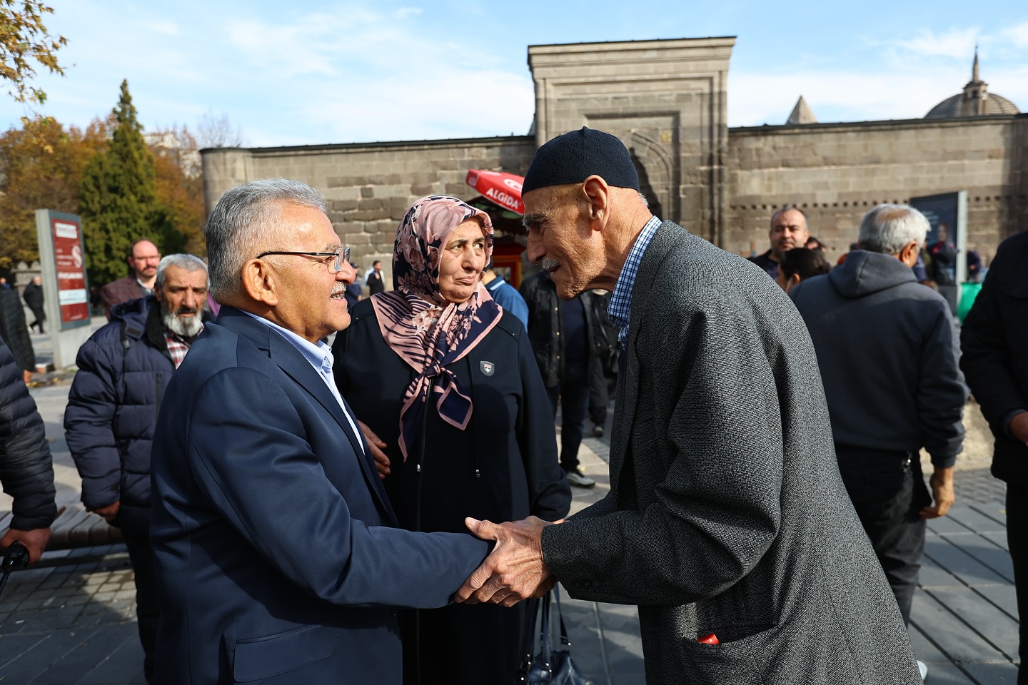 Hizmetkârı olmaktan büyük bir onur duydukları Kayserililerle daima iç içe, can cana olduklarını ifade eden Büyükşehir Belediye Başkanı Dr. Memduh Büyükkılıç, “Hunat Camii’nde kıldığımız Cuma namazının ardından hemşehrilerimizle ve esnaflarımızla bir araya gelerek hasbihal ettik. Hal hatır sorduk, gönül gönüle sohbet ederek hemşehrilerimizi dinledik” dedi.