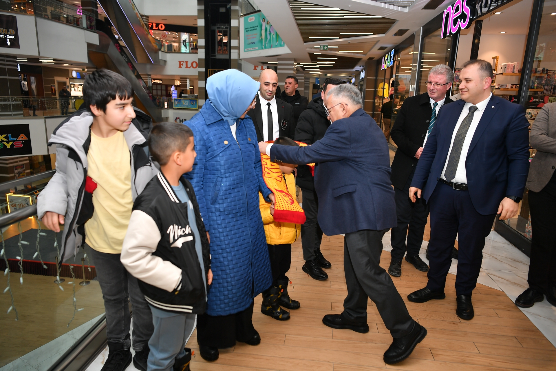 Gençlere Kayserispor atkısı hediye eden Büyükkılıç, onlarla da özel olarak ilgilendi, sohbet ederek fotoğraf çekindi.