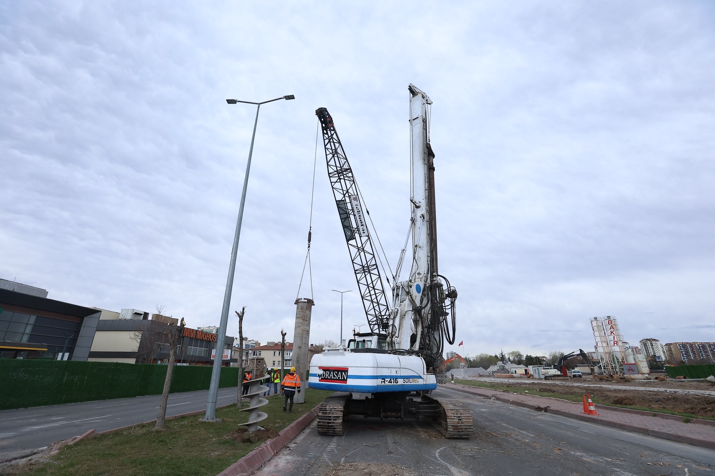 Proje çerçevesinde mevcut asfalt özel makinelerle sökülürken, kavşak çevresindeki ağaçlar da titizlikle farklı alanlara taşınarak korunuyor. Aynı zamanda altyapı güçlendirme çalışmaları kapsamında kazık çakma işlemleri devam ediyor.