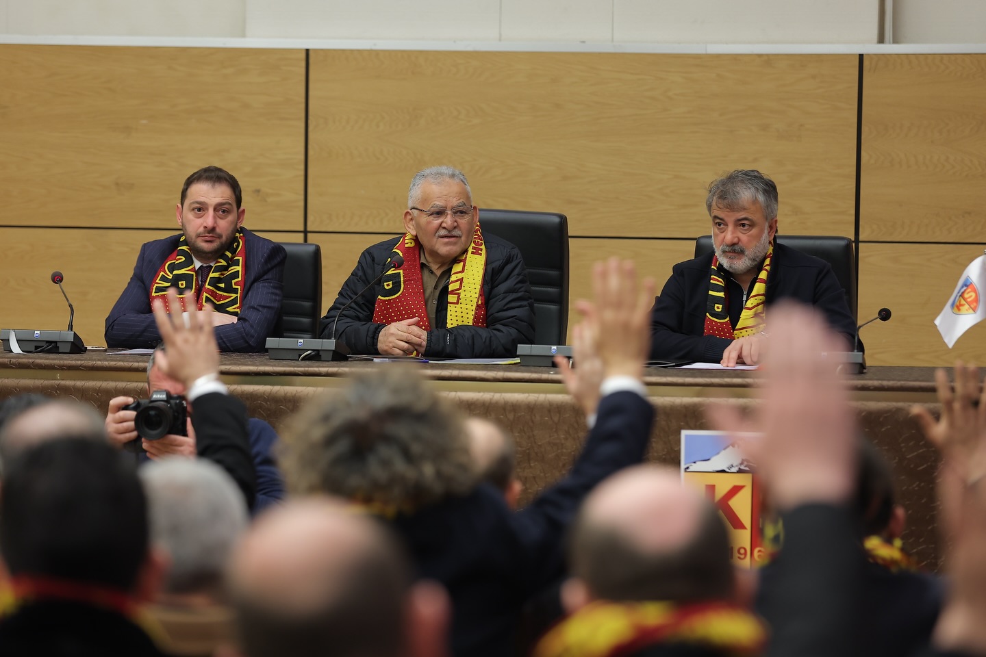 Kadir Has Kongre ve Kültür Merkezi Erciyes Salonu’nda gerçekleşen Kayserispor Olağanüstü Genel Kurulu’na Başkan Büyükkılıç’ın yanı sıra MHP Kayseri Milletvekili Baki Ersoy, MHP Kayseri İl Başkanı Enes Ertuğrul Kalın, kulüp yönetimi ve taraftarlar katıldı.