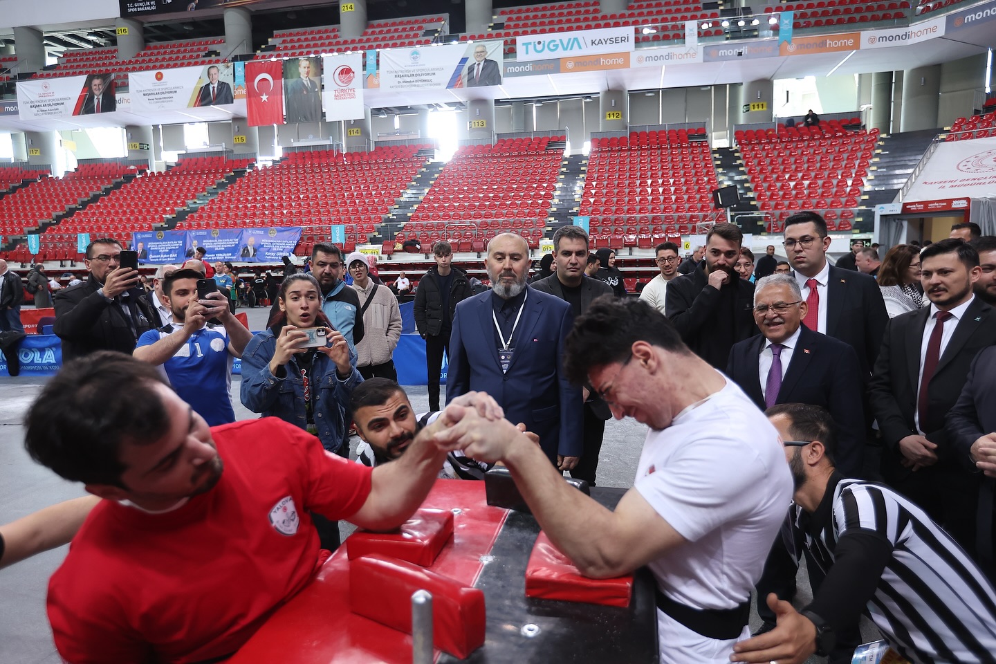 Altın bayrak ödüllü Avrupa’nın En İyi Spor Şehri Kayseri, Türkiye Bilek Güreşi Şampiyonası’na ev sahipliği yapıyor. Büyükşehir Belediye Başkanı Dr. Memduh Büyükkılıç, TÜGVA ile Türkiye Vücut Geliştirme Fitness ve Bilek Güreşi Federasyonu tarafından düzenlenen Türkiye Bilek Güreşi Şampiyonası’nı takip etti.
