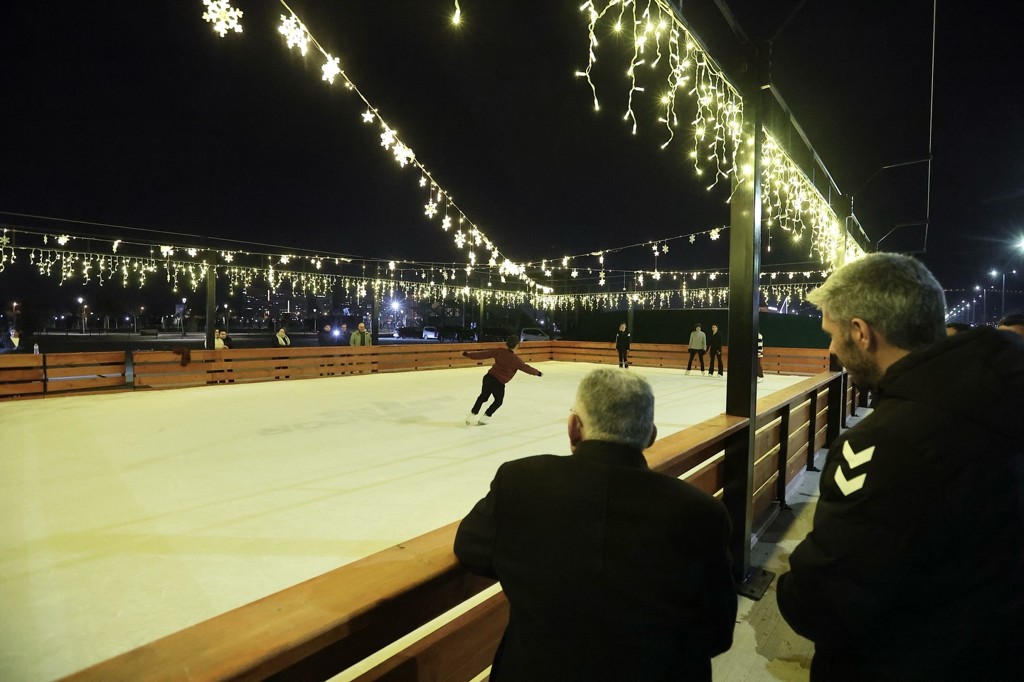 Büyükşehir Belediye Başkanı Dr. Memduh Büyükkılıç, Recep Tayyip Erdoğan Millet Bahçesi içerisinde yapımı tamamlanan açık hava buz pateni pistini ziyaret ederek çalışmaları yerinde inceledi. Gecenin bereketiyle gençlerin buz pistinde keyifli vakit geçirdiğini ifade eden Başkan Büyükkılıç, Kayseri’de gençlere yönelik spor ve sosyal alanları artırmaya devam ettiklerini söyledi.