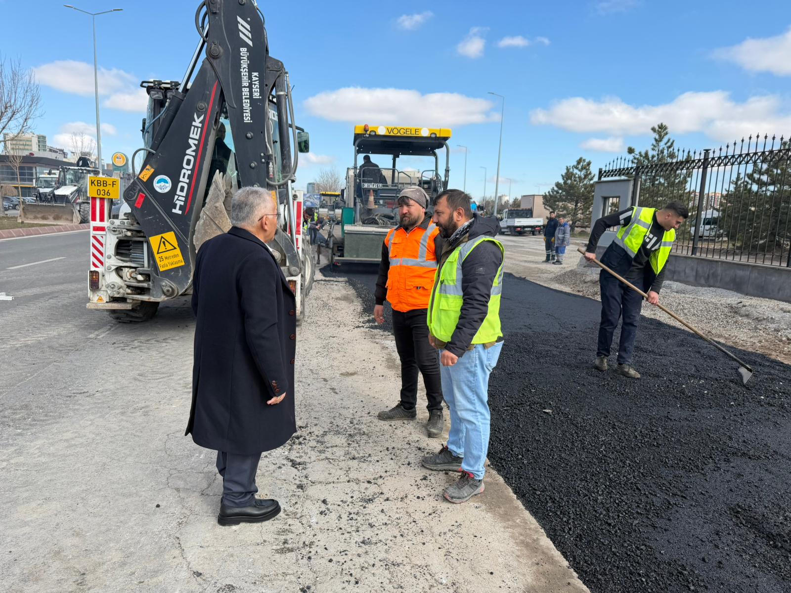 Kayseri Büyükşehir Belediye Başkanı Dr. Memduh Büyükkılıç, Kartal Kavşağı Projesi öncesinde alternatif ulaşım güzergâhlarında yürütülen çalışmaları yerinde inceledi. Asfalt yenileme çalışmalarını denetleyen Büyükkılıç, Kartal Kavşağı ve Bağlantı Yolları Projesi’ne adım adım ilerlendiğini söyledi.