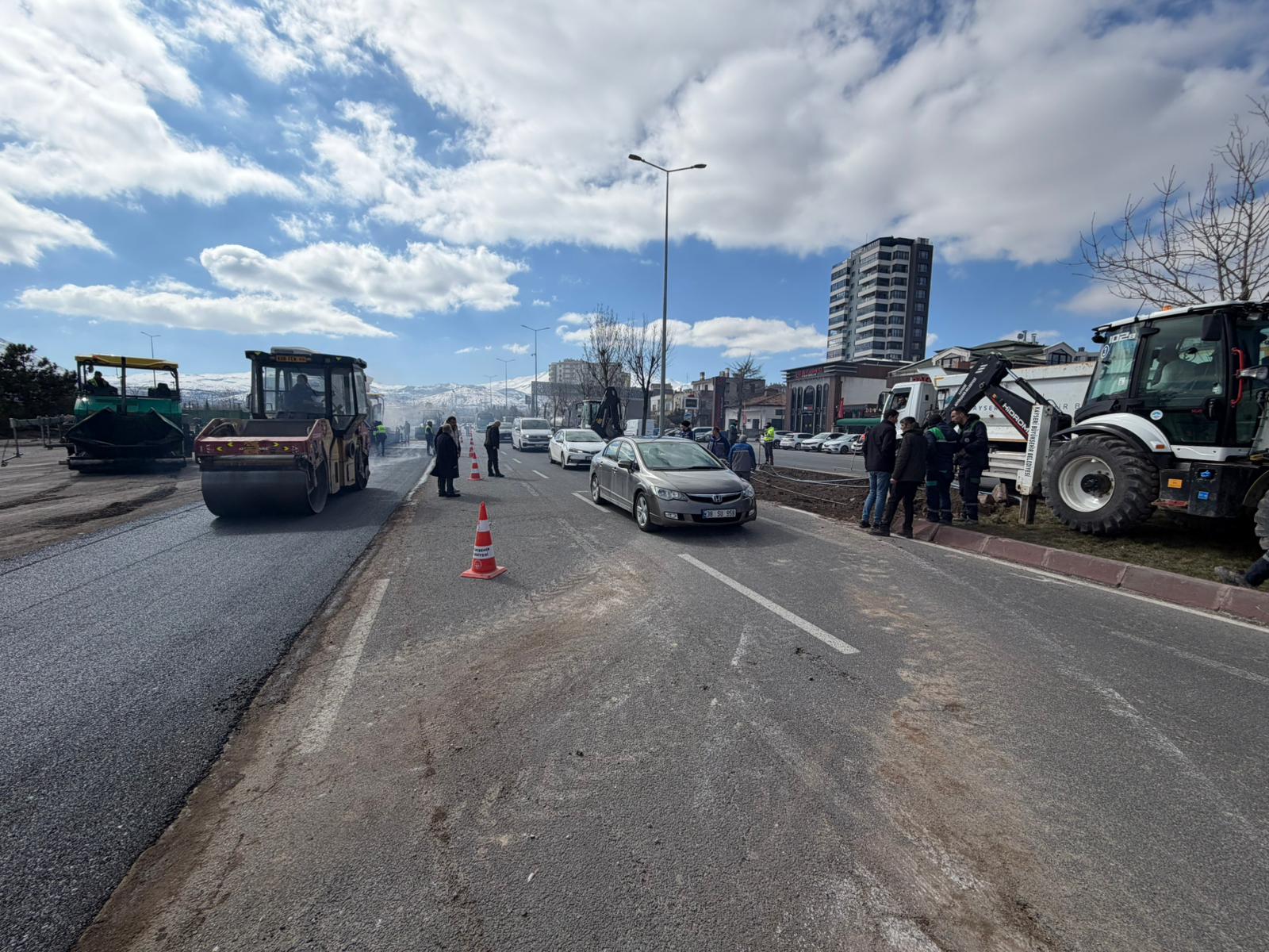 Mehmet Özhaseki Bulvarı üzerinde, Recep Tayyip Erdoğan Millet Bahçesi önünde gerçekleştirilen asfalt yenileme çalışmalarını sahada denetleyen Büyükkılıç, yol konforunu ve ulaşım güvenliğini arttırmaya yönelik çalışmaların hızla sürdüğünü ifade etti.