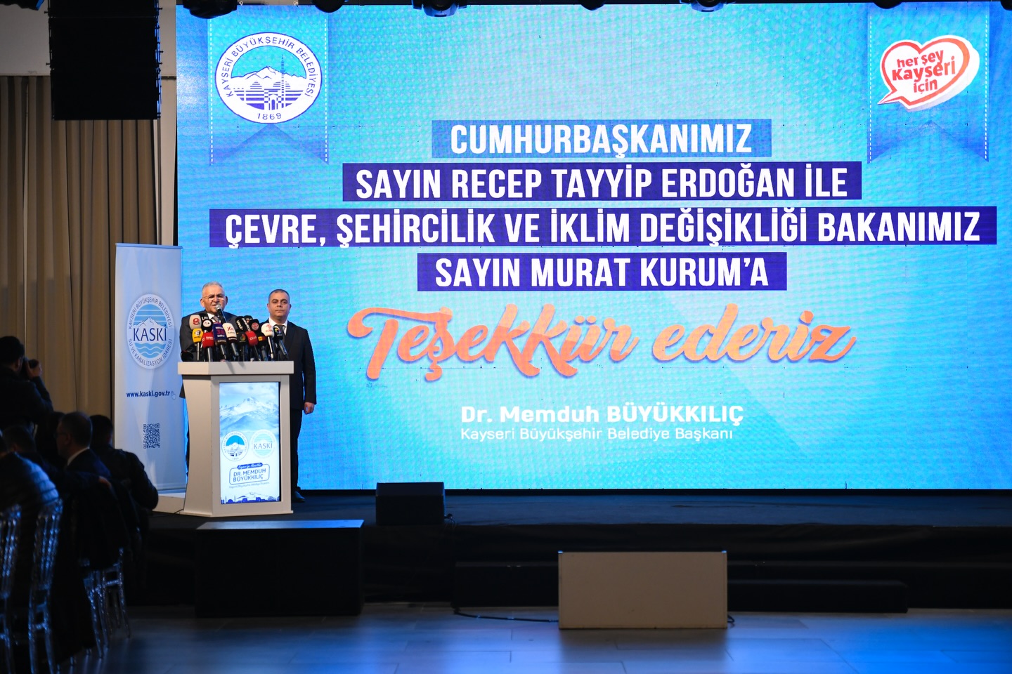 Büyükkılıç, programda KASKİ’nin altyapı faaliyetleri ve projelerine de değinerek, “İnsanı yaşat ki devlet yaşasın felsefesiyle bizleri talimatlandıran Recep Tayyip Erdoğan’ın Cumhurbaşkanı olduğu ülkede bir kişi de olsa hizmetle buluşması gerekir diye buradan hatırlatıyoruz” dedi. Başkan Büyükkılıç, KASKİ’nin tarımsal sulama, yağmur suyu hattı yatırımlarına da ayrı bir parantez açarak DSİ Genel Müdürlüğü’ne iş birliklerinden dolayı teşekkür etti.