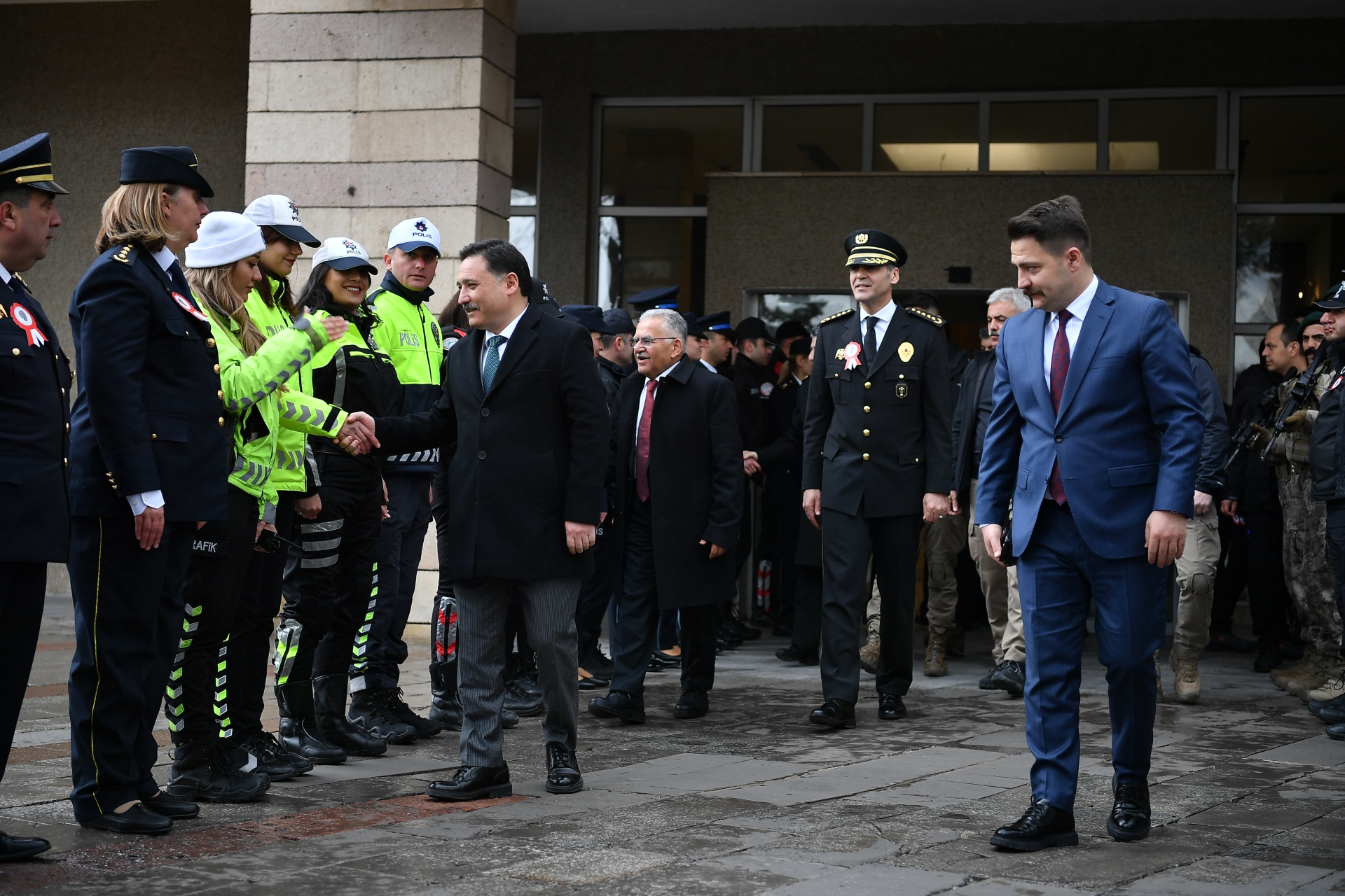 Kayseri Büyükşehir Belediye Başkanı Dr. Memduh Büyükkılıç, Polis Haftası kapsamında emniyet teşkilatıyla birlikte Vali Gökmen Çiçek’i ziyaret etti, etkinlik alanındaki stantları gezerek bilgi aldı. Büyükkılıç, polislerin toplumla bütünleşen fedakâr çalışmalarından onur duyduklarını vurguladı.