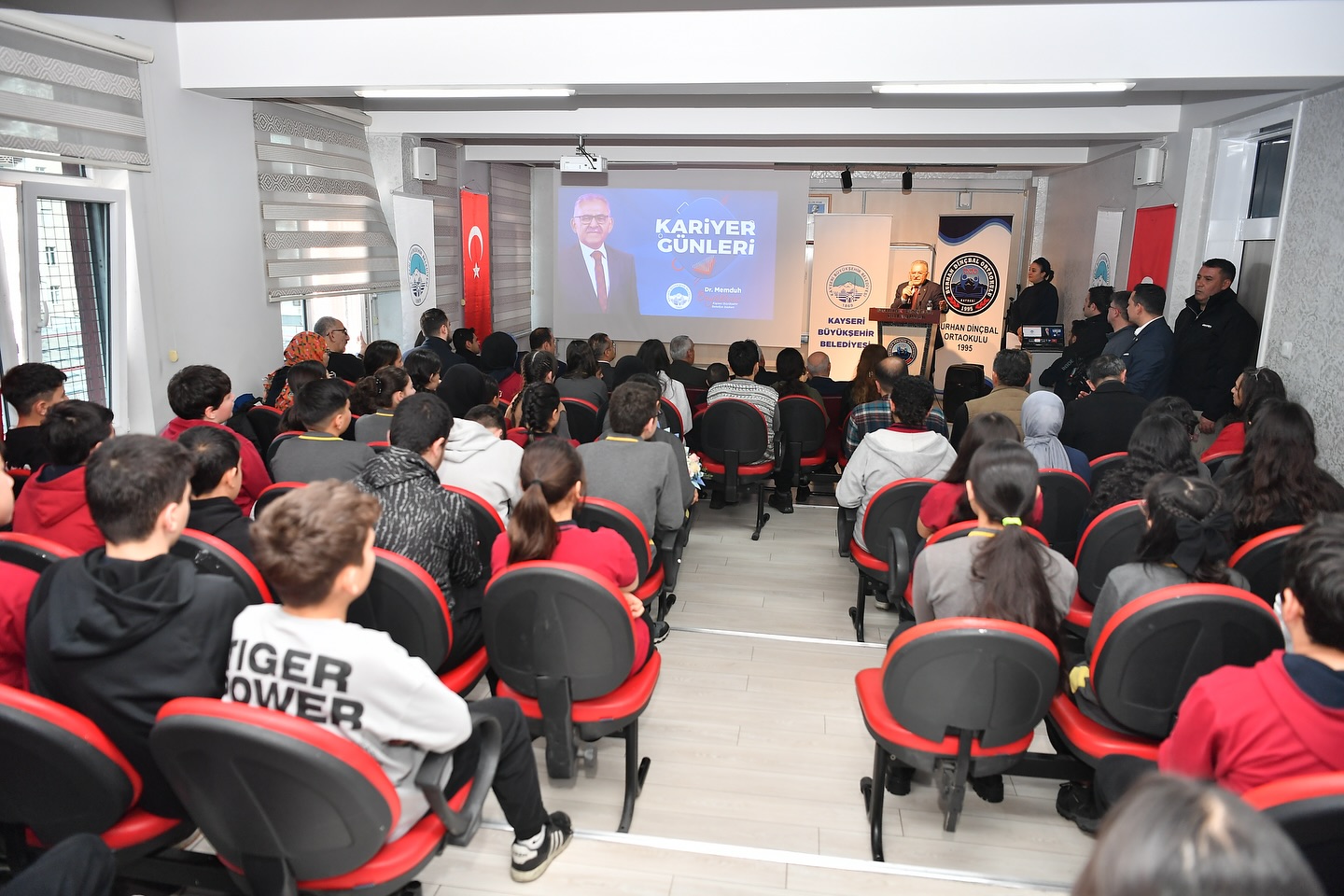 Kariyer Günleri buluşmasına Büyükkılıç’ın yanı sıra Melikgazi İlçe Milli Eğitim Müdürü Hacı Kaya, Okul Müdürü Ahmet Demirbaş, Büyükşehir Belediyesi Genel Sekreter Yardımcıları Fatih Temeltaş, Ufuk Sekmen, Basın Yayın ve Halkla İlişkiler Daire Başkanı Cenani Ayaydın ile öğretmenler ve öğrenciler katıldı.
