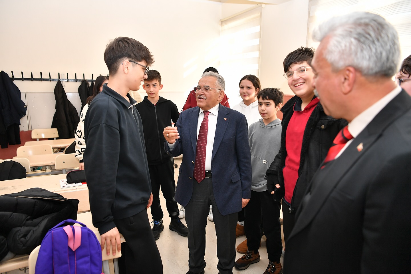 Okul girişinde öğrenciler tarafından çiçeklerle karşılanan Büyükkılıç, sınıfları gezerek, okulun öğretmenler odasında geleceğin mimarı öğretmenlerle bir araya geldi. Başkan Büyükkılıç, daha sonra okulun konferans salonuna geçerek program çerçevesinde buluştuğu gençler tarafından alkışlar eşliğinde coşkulu bir şekilde karşılandı.