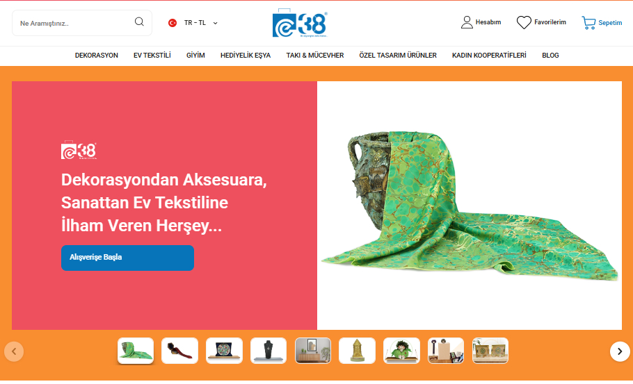 Yerli ve milli yazılım ile yaklaşık 200 ülkeye hitap eden e 38, birbirinden farklı ve değerli el emeği olan 900’den fazla ürün ile insanlara hizmet veriyor.