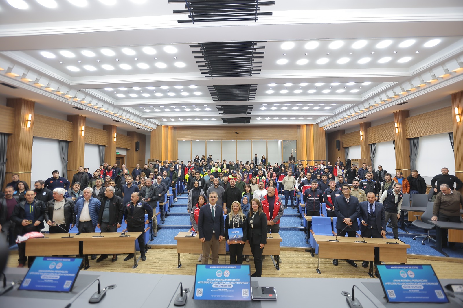 Saygı duruşunda bulunulması ve İstiklal Marşı’nın okunmasıyla Büyükşehir Belediyesi Meclis Salonu'nda başlayan eğitime, Büyükşehir Belediyesi Genel Sekreter Yardımcısı Ufuk Sekmen, Afet İşleri ve Risk Yönetimi Daire Başkanı Gonca Arın, Erciyes Üniversitesi Tıp Fakültesi Hastaneleri İş Sağlığı Güvenliği Birim Sorumlusu ve İşyeri Hekimi Prof. Dr. Elçin Balcı’nın yanı sıra Büyükşehir Belediyesi, KCETAŞ, İl Emniyet Müdürlüğü, Meteoroloji Bölge Müdürlüğü, ADKUR Adliye Arama Kurtarma, Karayolları Bölge Müdürlüğü, Hacılar, Yeşilhisar, Pınarbaşı ve Bünyan ilçe belediye personeli, KASKİ, Kızılay Sar Arama Kurtarma, HADAK, Hayrat Arama Kurtarma, MEB AKUP Ekip Lideri, Kayseri İl Tarım ve Orman Müdürlüğü, Çevik Kuvvet Şube Müdürlüğü, Türk Telekom Arama Kurtarma, Türk Altın Madenleri Arama Kurtarma, ANDA Arama Kurtarma, Turkuaz Arama Kurtarma, OSB İtfaiye, İHH Arama Kurtarma, Yesevi Arama Kurtarma, Gökbörü Arama Kurtarma personeli ile Kayseri Üniversitesi gibi kurum ve kuruluşlardan görevliler katıldı.